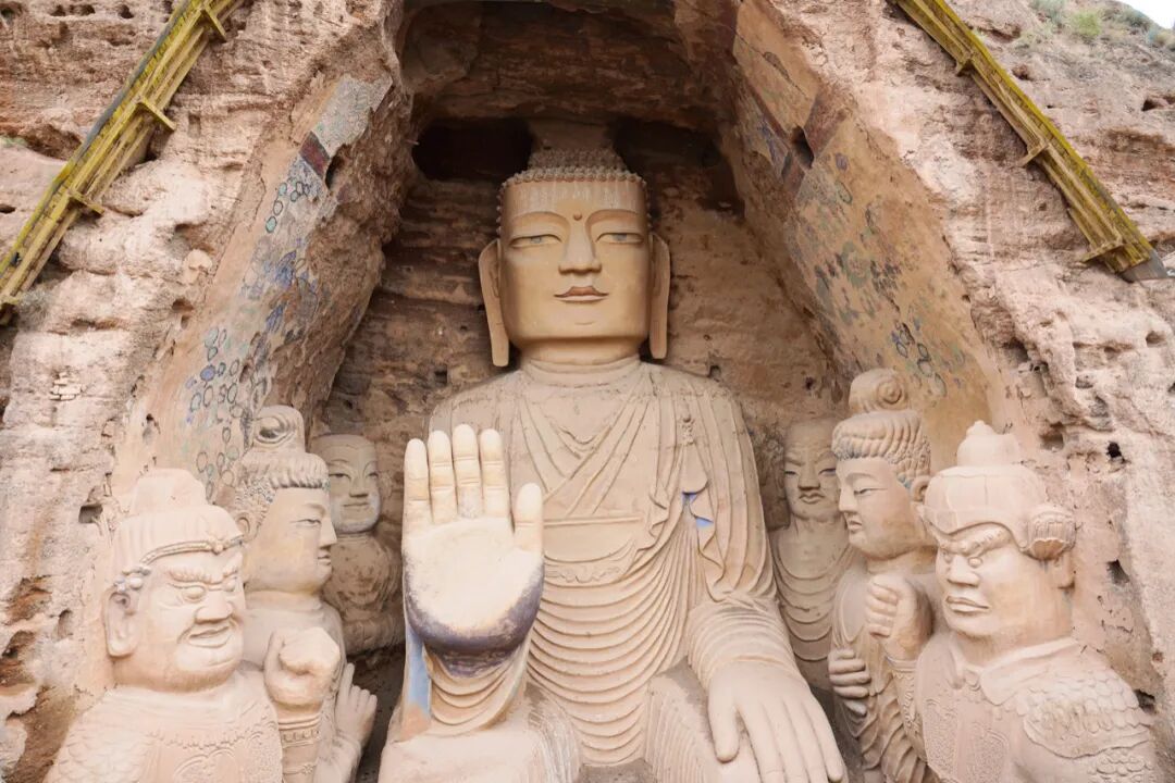 天梯山石窟保存较为完好的就是第13号窟(也被称为大佛窟),窟龛内保留下了5尊大佛,若干壁画,通过修复后虽然有些违和但也不失古韵之美。