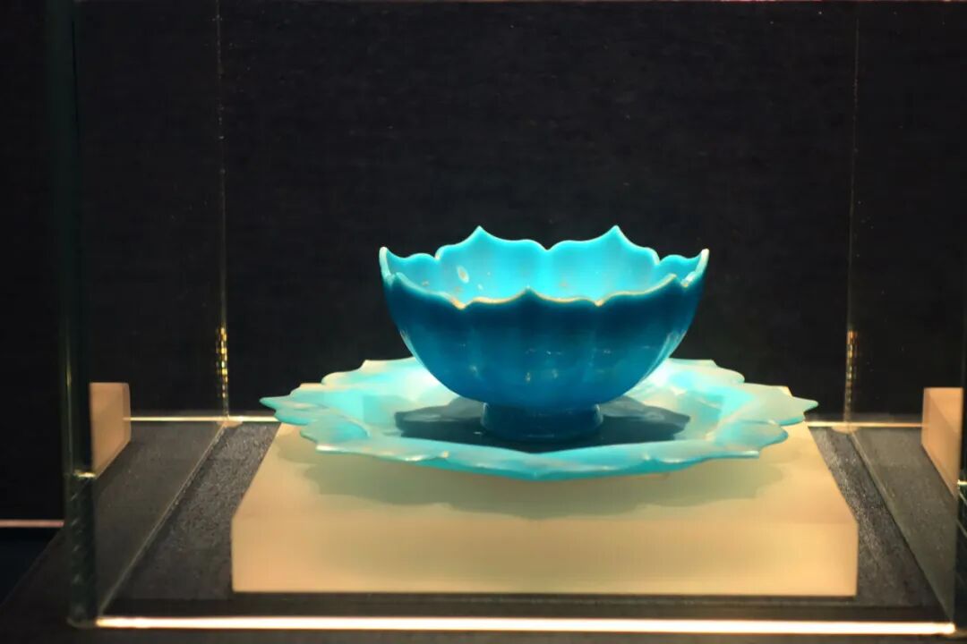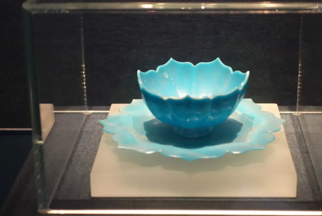 3️⃣元代玻璃莲花托盏:这同样是甘肃省博物馆中我最喜欢的文物之一,虽然我国早在西汉时期就已经开始制作玻璃器皿,但是由于制瓷业太多余强盛,导致了玻璃生产并没有很好的被器重,因此中国精美出土的比较精品的玻璃文物并不算太多。