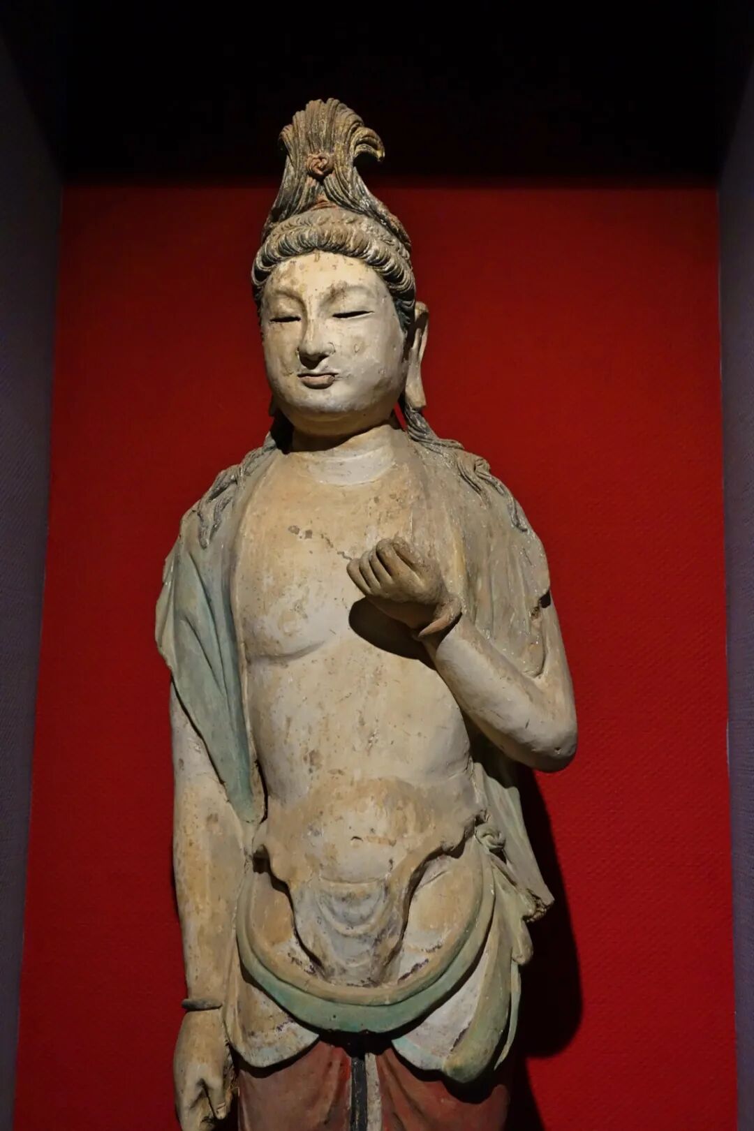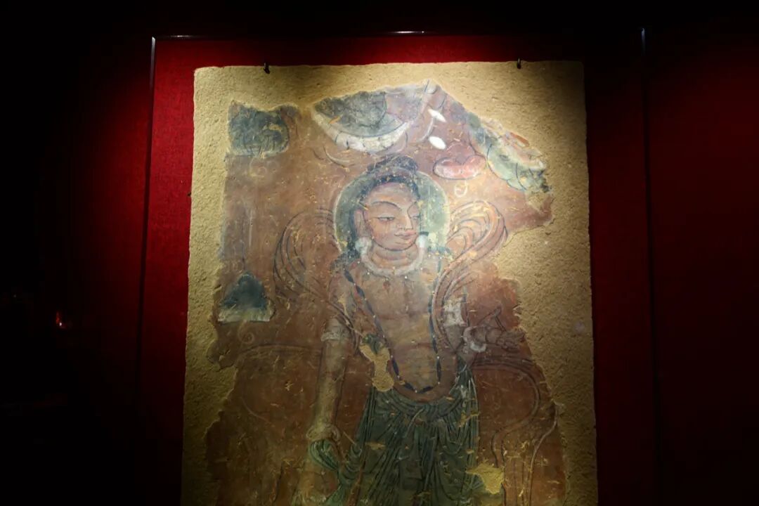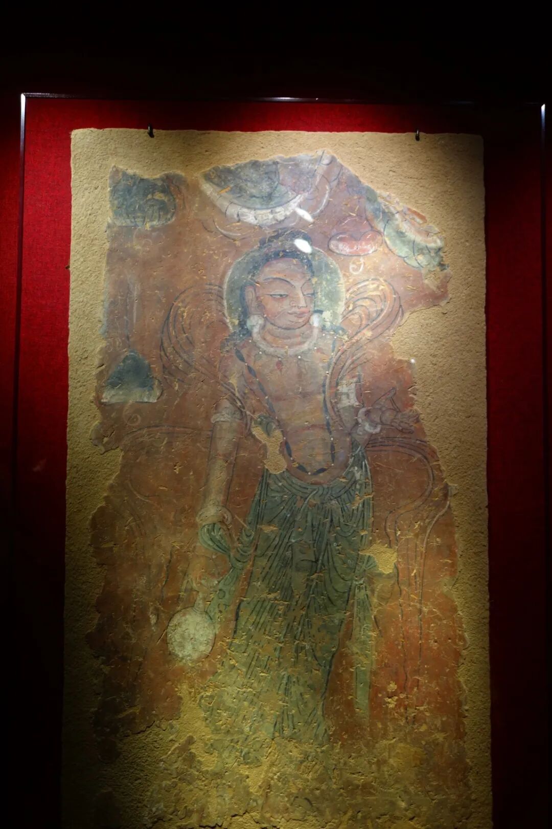 1️⃣天梯山石窟出土的壁画:可以说这是甘肃省博物馆最让我喜欢文物之一,为北凉时期保存至今的彩绘壁画,除了保存完好之外,其图案中的菩萨造型也非常特色。