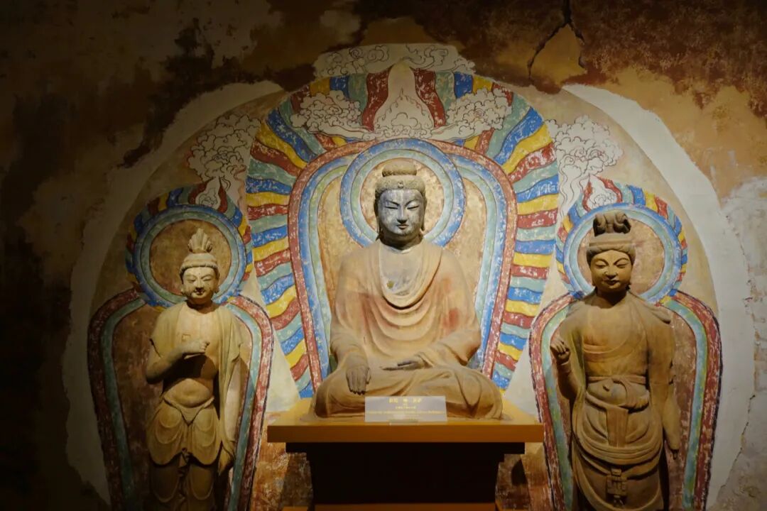壁画旁边还有一大批天梯山石窟出土的唐代彩塑,这批彩塑和莫高窟中的唐代彩塑有着异曲同工之妙,同样精彩值得关注。