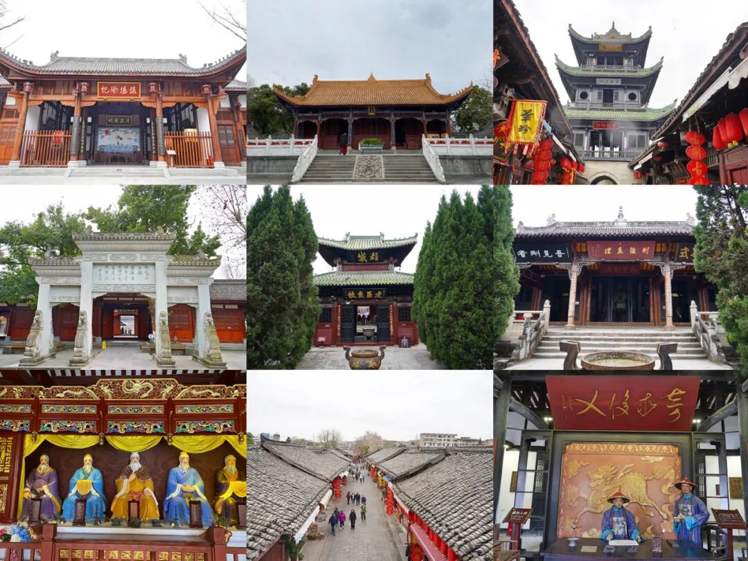 1️⃣其一是最热闹的汉桓侯祠,也就是当地人口中的张飞庙,始建于三国时期,现存的建筑主要还是明清时期的遗存;敌万楼两侧镶嵌着明代的石碑;清代的面阔五间大殿中供奉着张飞的塑像;张飞墓亭中立有明代的张飞泥塑像;厢房中保留着24通历朝历代石刻。