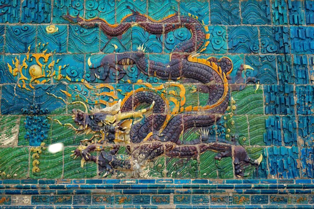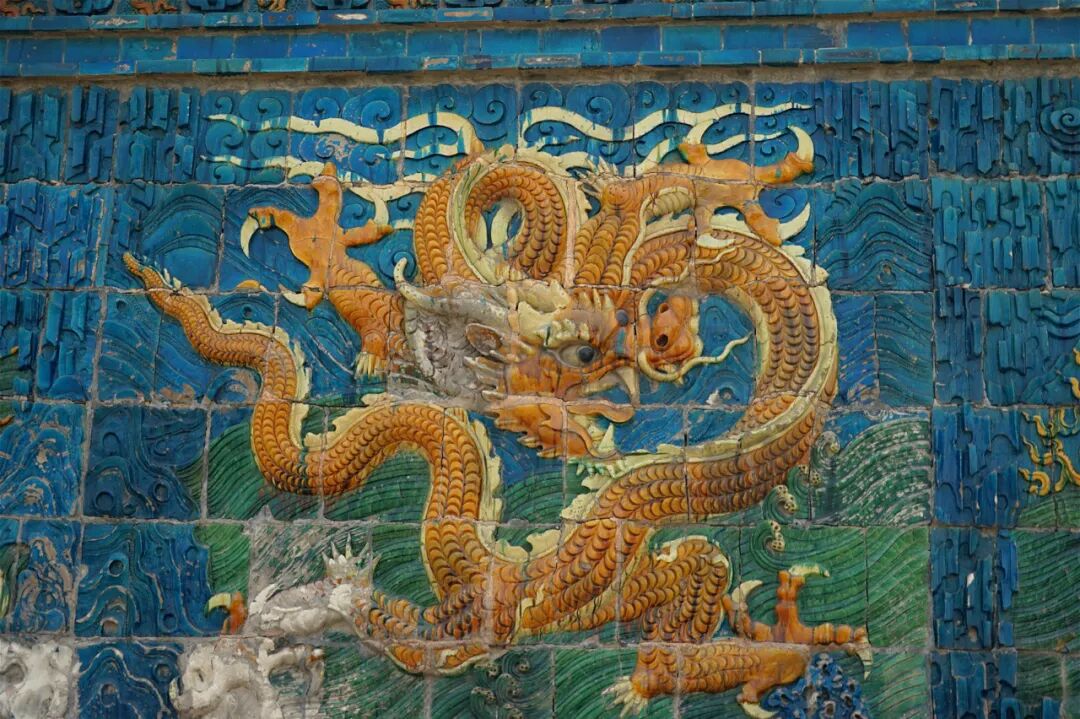 这个九龙壁建于明代洪武末年,是明太祖朱元璋第十三子朱桂代王府前的琉璃照壁,距今已有600多年的历史,至今保存较完好。长45米的赵壁上,九条飞龙精美绝伦,琉璃工艺富丽堂皇,看起来格外气势。