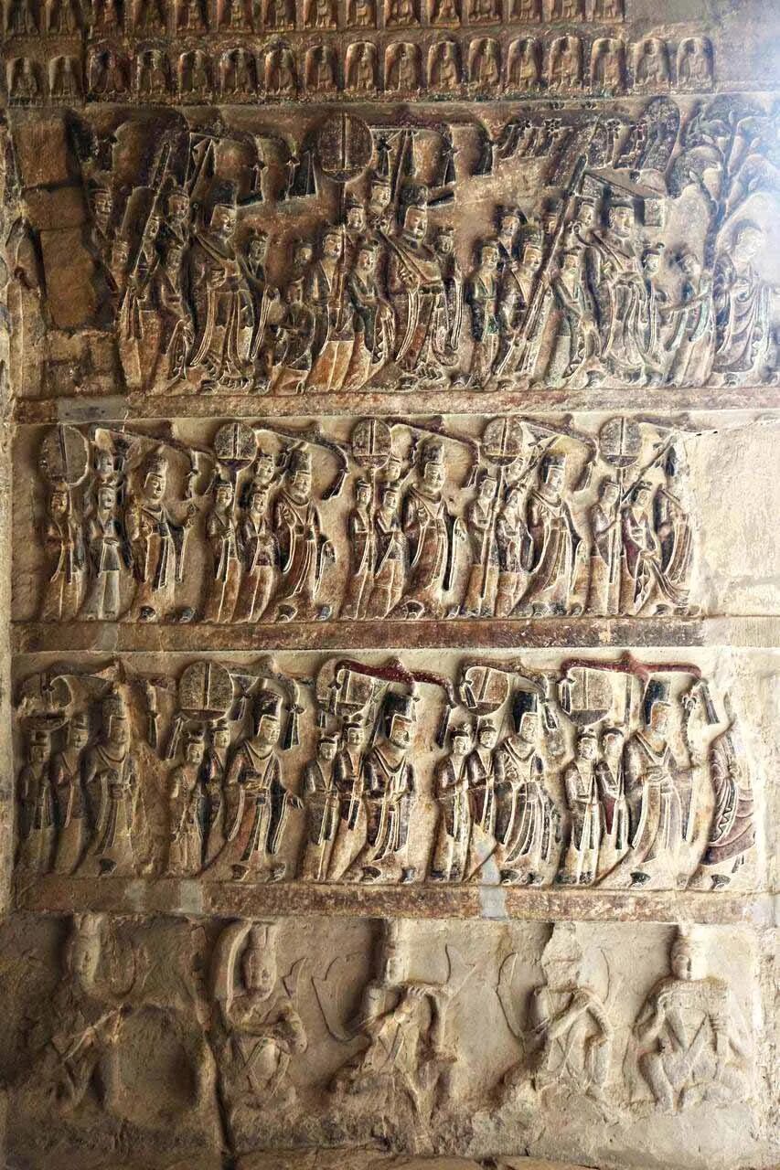 其实这些造像如果你之前去过云冈石窟或者龙门石窟的话,那么这个巩义石窟并不会让你惊喜,但是这个石窟的重点在于《帝后礼佛图》,这可是中国现存最精美的石刻浮雕之一。
