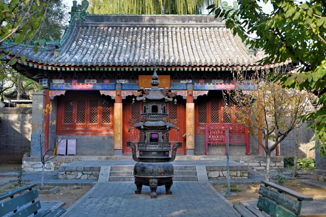 最后一站就把时间留给鲁班庙,是奉祀土木工匠祖师鲁班的地方。整体的面积不大建筑却井然有序,重点可以关注正殿先师殿的木材,铁糙木为皇家用料,歇山顶的屋顶也展示了它的尊贵地位。