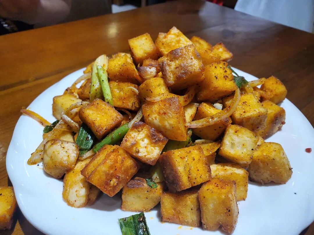 或许和前面几个美食相比,炒馍的名气不算太大,但是当你在河西走廊的几个城市嘉峪关、张掖、敦煌中旅行,它的出现几率非常高。炒馍顾名思义就是将当地特色的馍炒着吃,一般来说都是将馍切成小方块,然后将馍炸一下,搭配大蒜洋葱或者肉类一起炒,就形成了图中一份炒馍。炒馍的口感上酥脆鲜香,品尝起来非常够味。