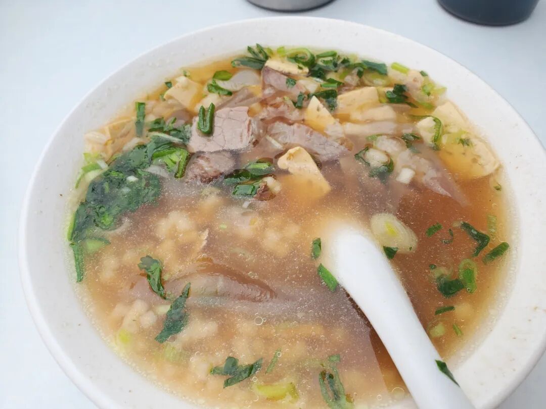 牛肉小饭看起来虽然简单,但是却采用了不少的食材,小面块、小肉块、小豆腐、小菜丁以及小料等,因为都小小的因此被叫做小饭。牛肉小饭的口感在我看来也非常地道,牛肉嫩滑,小面疙瘩爽口,因此品尝起来非常有甘肃味道。