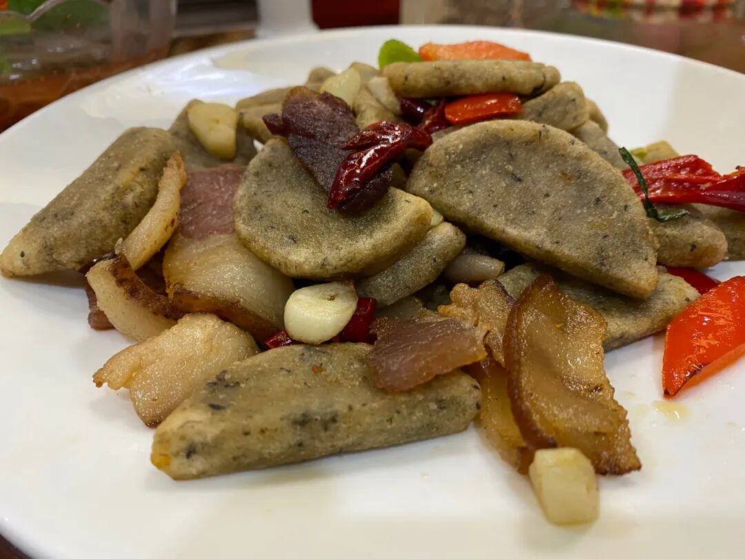 不过对于游客来说最常见的就是腊肉炒粑粑,也几乎是每个恩施菜馆中必备的菜肴,腊肉粑粑食材非常简单,当地特色的腊肉,青红辣椒等。虽然食材简单,但口味却很独特。粑粑的脆糯搭配上腊肉的熏香味。一口下下去就会记住。
