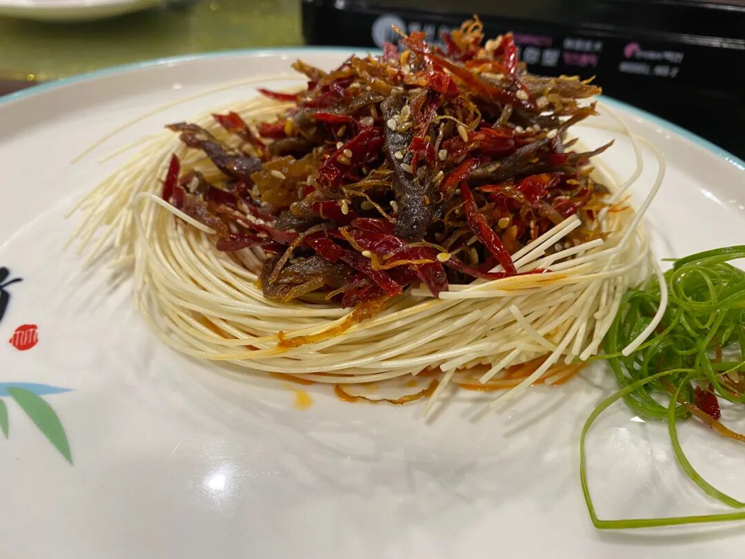 当这道菜品上来的时候,我以为是油渣碎,服务员告诉我在当地这个叫做榨广椒,食材主要选用了鲜红辣椒酱和玉米面。当地人有着“三日不吃酸和辣,心里就象猫儿抓”的习惯,因此榨广椒在恩施当地非常受欢迎,一般也会搭配腊肉一起炒,是一款很好的下饭菜。