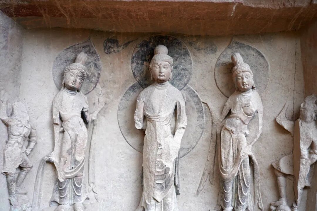 3️⃣北魏经典造像:如果你看过云冈石窟的造像,那么你一定知道“秀骨清像”这个词汇,炳灵寺石窟的第126窟开凿于北魏,全窟112尊造像均为典型的北魏特色,秀骨清像的交脚菩萨坐在方座上。