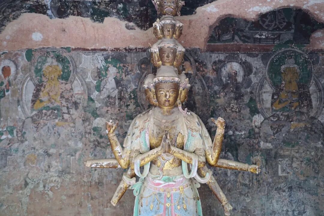 7️⃣特色的元代造像,我个人建议大家先不要看70窟,等看完北魏以及隋唐的窟龛后,再来看这个建造于元代的窟龛,最特色的就是中间的八臂十一面观音泥塑,虽然有些残破但依然呈现出别样的艺术。