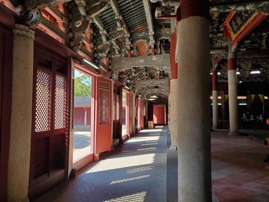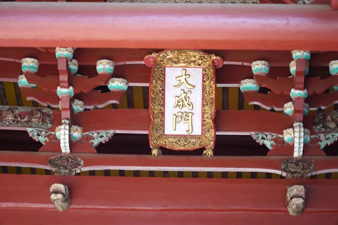 作为府文庙核心区域的第一座建筑,大成门不会让你失望,它为一座清代保存至今的建筑,虽然和后面几座建筑相比并不算太久远,但好在其屋顶可以看到色彩缤纷的东南沿海特色的潜瓷工艺,木檐中可以看到精美的木雕艺术。