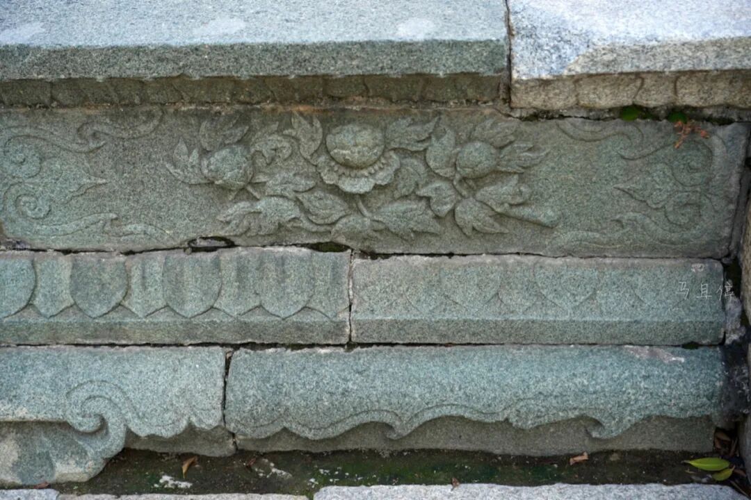 月台最精妙的地方就是须弥座处的青石浮雕,为宋代保存至今的遗存。这些青石浮雕虽经历千年,却清晰可见,仰莲、复莲、扶桑、山茶、牡丹等花卉植物,想必一定是寓意吉祥如意。