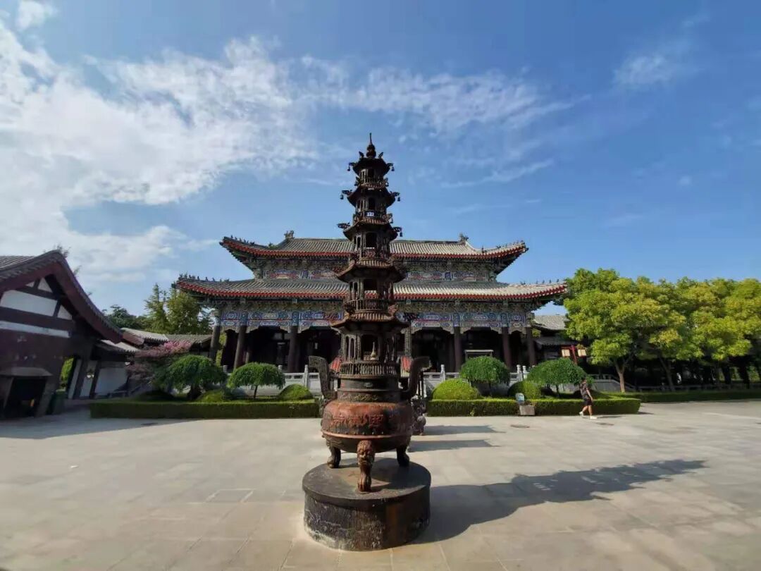 琅琊阁旁边又是一座新修的建筑,这里就是普照寺。曾经这座寺是为了保护琅琊王氏家族的故居而修建。后期几近修建和改名,寺庙都一直生生不息。不过后期被日军侵占后遭到损毁。如今我们看到的寺院是在2003年修缮的,复原了晒书台、集柳碑、右军祠等历史遗迹,让这座古代琅琊八景之一的“普照夕阳”重现于世。