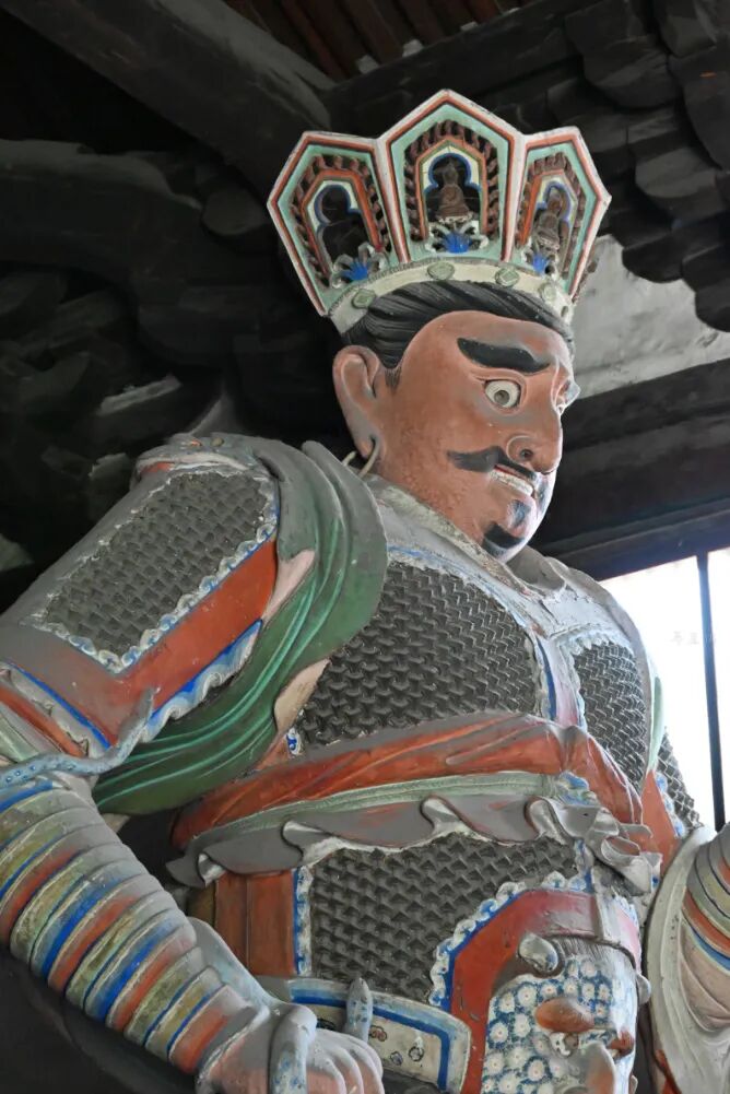 虽然相对华严寺而言,崇善寺比较小众,但其实善化寺的看点并不少,比如说大雄宝殿内的34尊辽金时期的彩塑以及清代的190多平米的壁画;譬如天王殿中现存金代时期最大的山门和明代四大王彩塑;譬如南大门前面的五龙壁等等,都是来善化寺必打卡的景点。