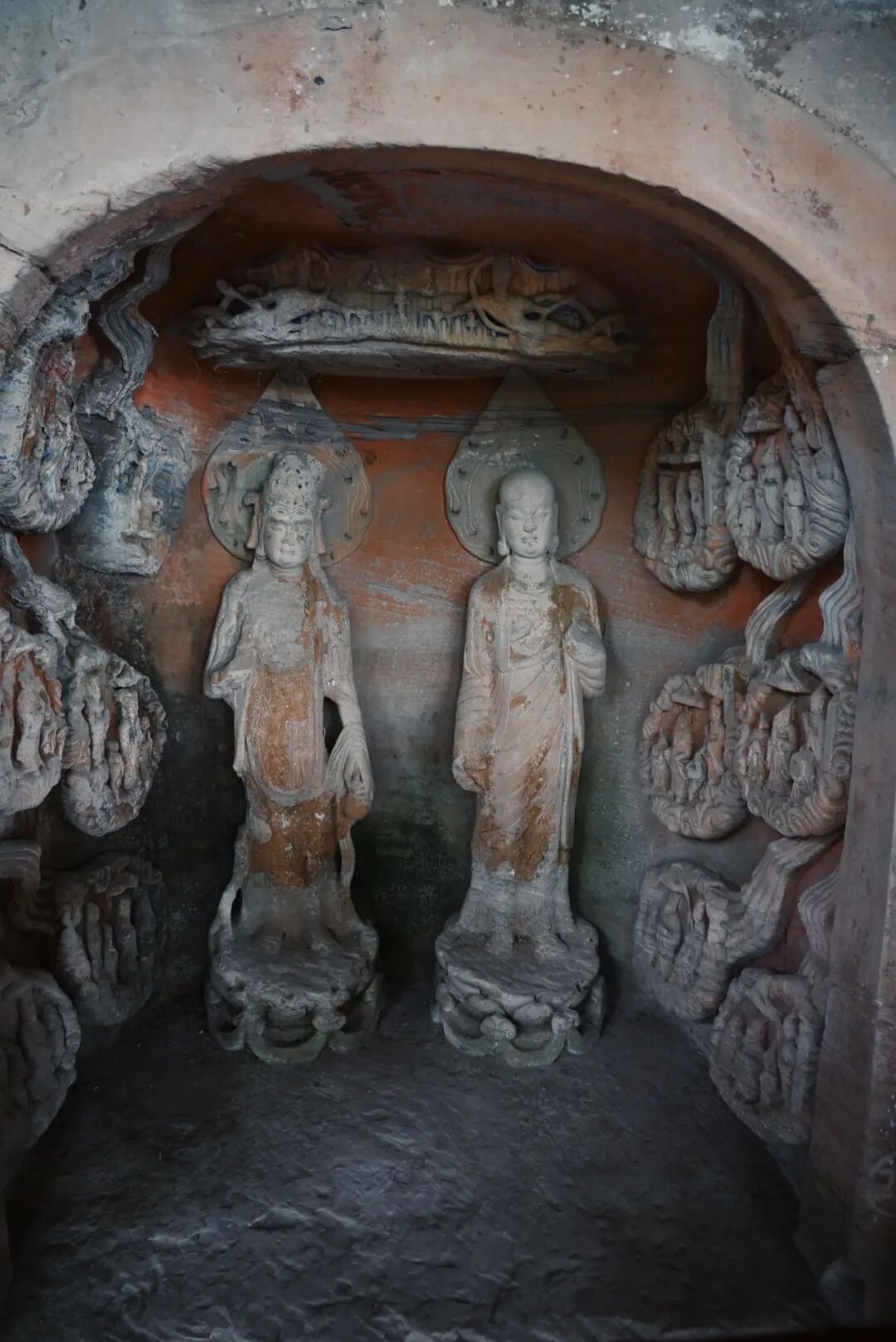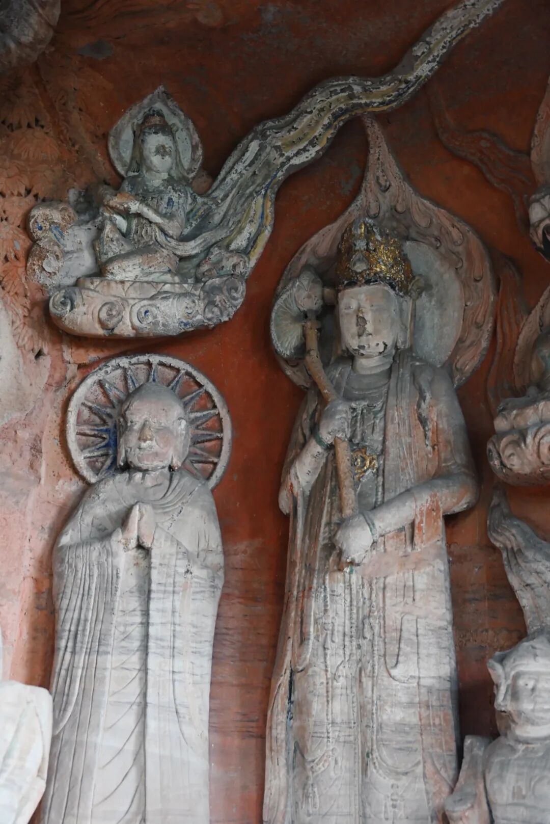第三:编号“观音地藏龛”,这是石窟区域接近尾声的一个窟龛,藏在角落里很容易被游客忽略,但作为北山石刻中为数不多的五代造像,它很好的诠释了承前启后的作用。