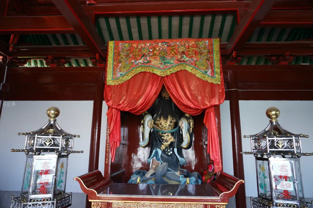 韩江楼的北侧就是另一座建筑--面阔三间的玄天阁,为一座斗拱抬梁式木结构的建筑,里面供奉着玄天上帝,也就是北方之神,同样造像是后期重塑的。