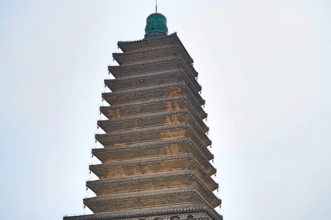 相比之下,朝阳双塔中的南塔保存的就不如北塔来得完好,辽代十三级密檐式砖筑佛塔,现高42.6米,由夯土台基、砖台座、须弥座、塔身、塔檐、刹顶组成。除了整体建筑保存较为完好之外,塔身的浮雕均已经消失。