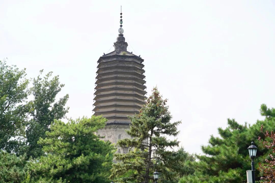 地处辽宁朝阳市的北塔同样也是辽代的遗存,它是一座方行空心十三级密檐式砖筑,其最精美的地方同样是保存完好的浮雕,四方佛、八胁侍菩萨、二十四飞天等很是精美。