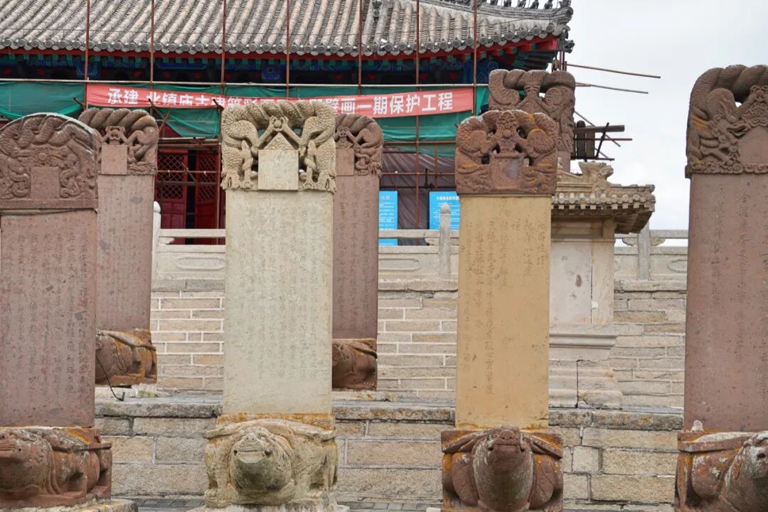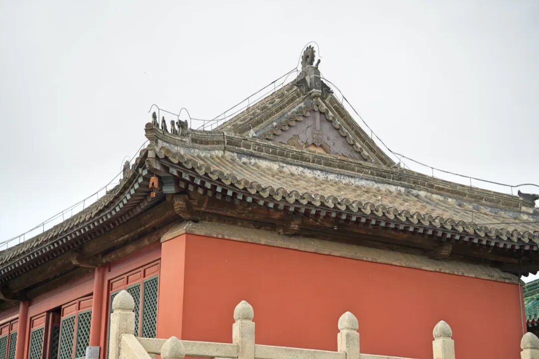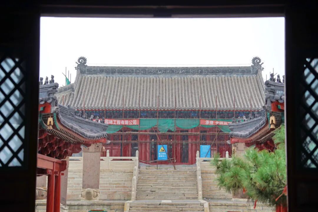碑刻群的上方就是北镇庙的主殿,很可惜我去的时候正在维修没有开放,听工作人员说大殿内有不少的看点,藏有明代的造像,对联还有明代开国封王功臣32人画像。