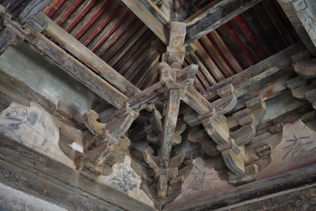 但是如今看到的是清代重修的建筑,面阔五间,进深两间,单檐悬山顶,中部辟门直通往大殿。