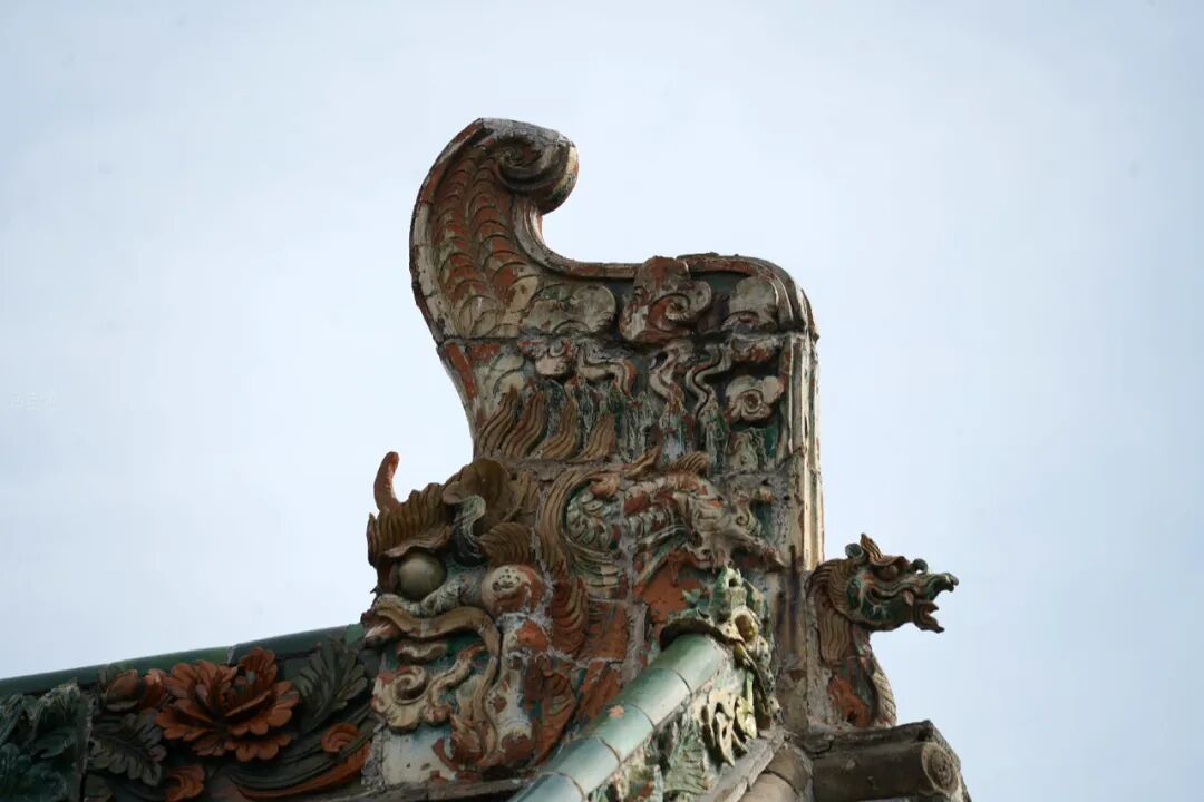 从这个门中穿过就进入了城隍庙的主殿,也就是这里最精美的建筑。大殿是宋代的建筑,为面阔五间,进深三间,单檐歇山顶。虽然有些建筑是后期朝代维修时候更换过,但是大体的木构建筑仍然是宋代的遗存。除了宋代木构结构之外,歇山部分的琉璃装饰物同样非常精美,尤其是"二龙戏珠"更是栩栩如生,这些琉璃制品都是明年时期的遗存。