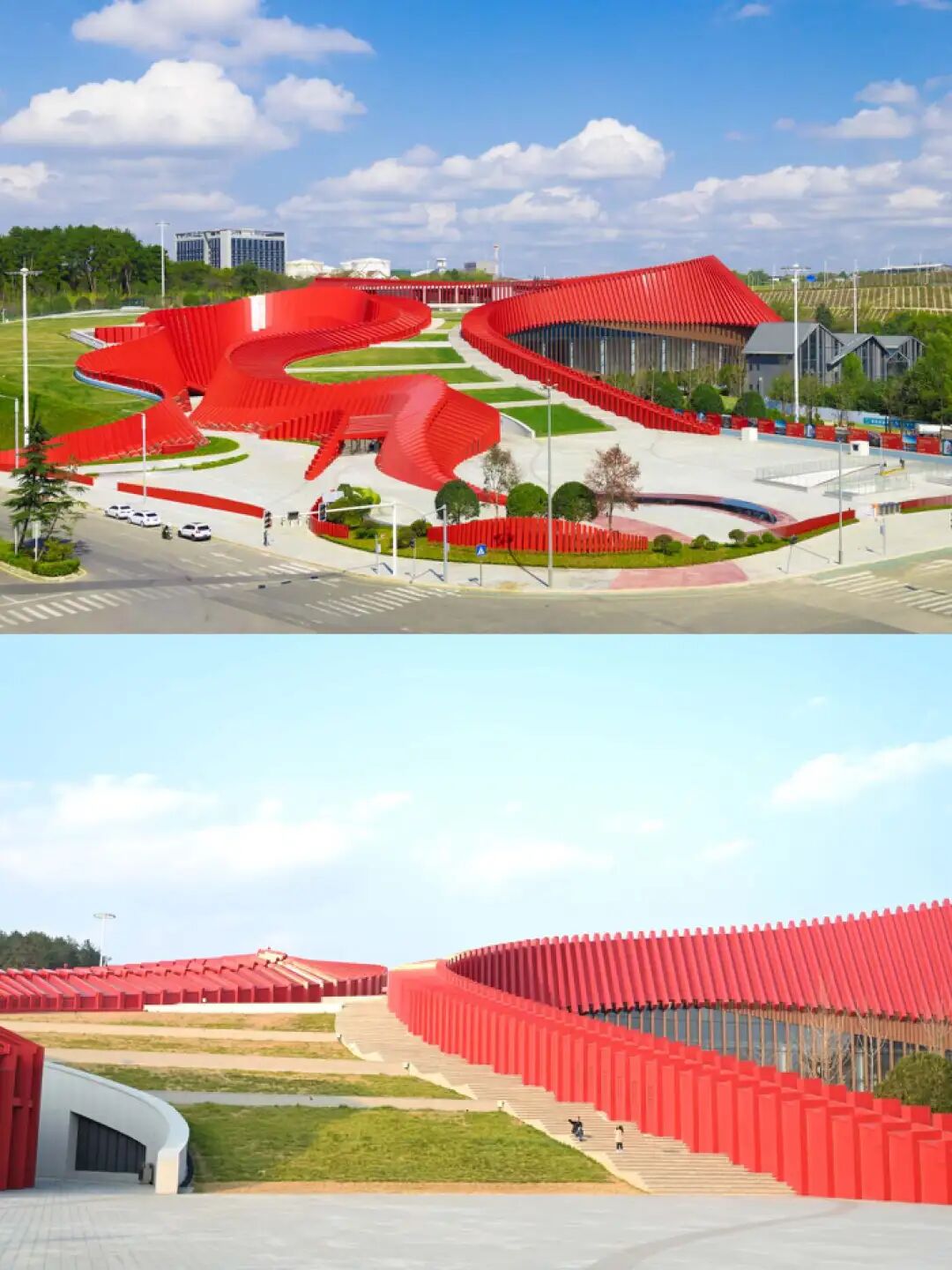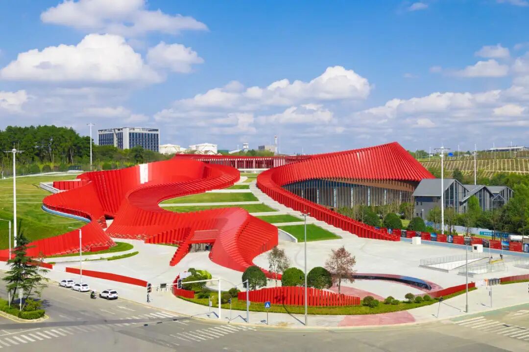 其次整个科技体验馆的建筑外形非常宏大,有着贵州山势起伏的特征,外墙的跳色设计也非常有心意。
