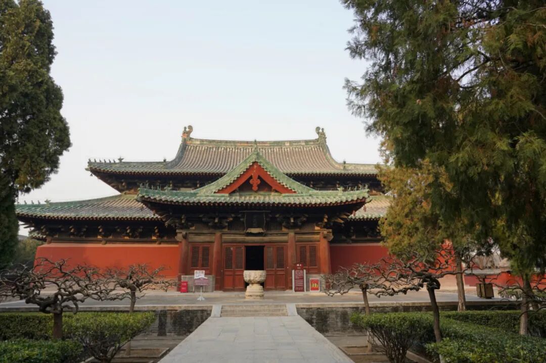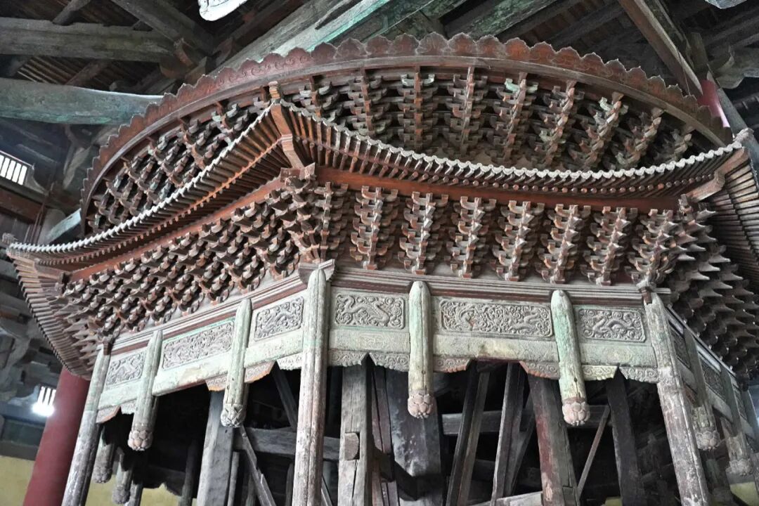 摩尼殿中可以看到宋代《营造法式》中标准的木结构建筑,殿堂内部保留着宋代华丽的彩塑以及恢弘的壁画;戒坛遗址上立有六尊等级极高的神兽;
