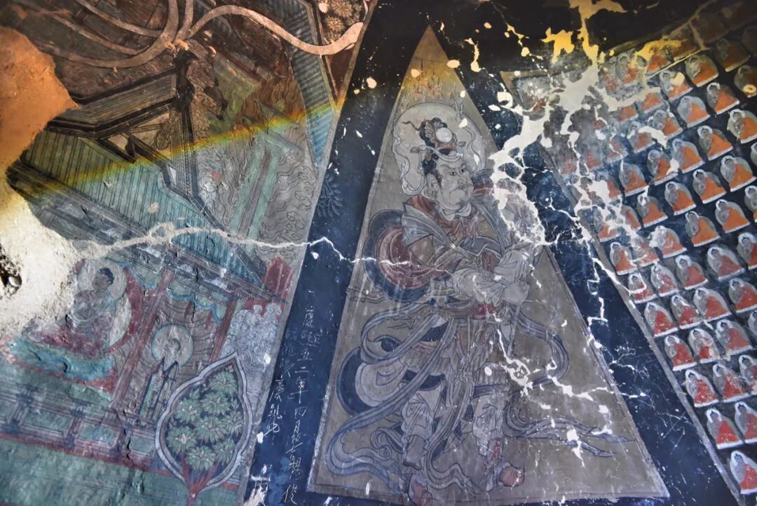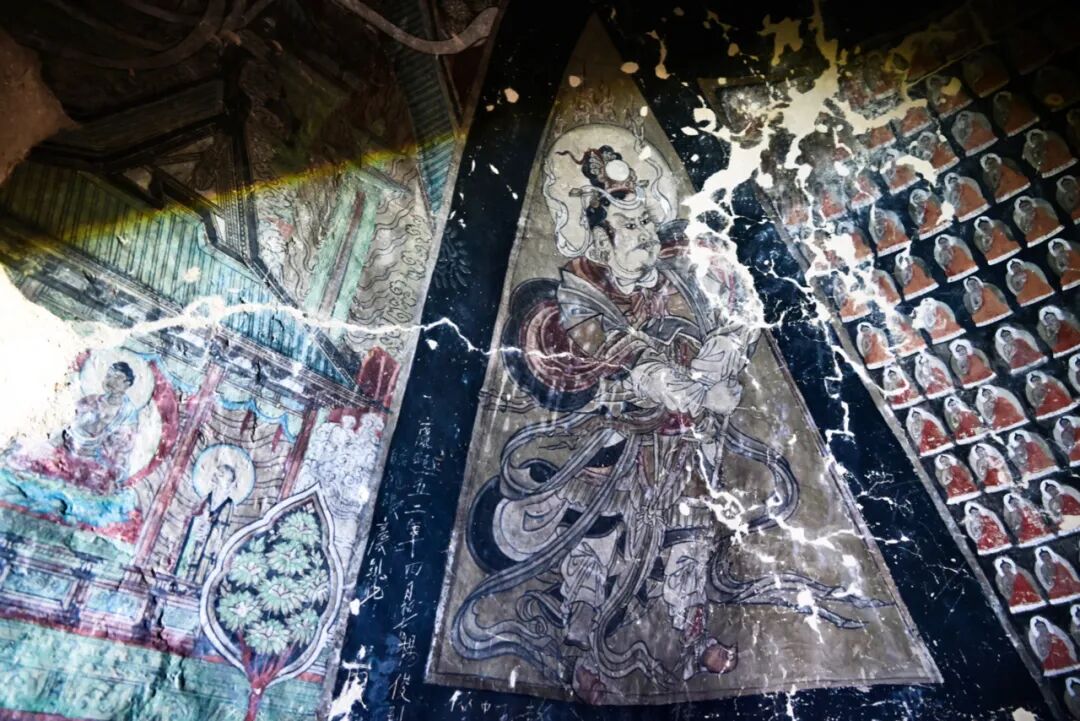 和文殊菩萨一样精美的还有两侧身披铠甲的天王像,神态威严,栩栩如生,尤其是眼部描绘得活灵活现,仿佛真人在守护着这个洞窟。