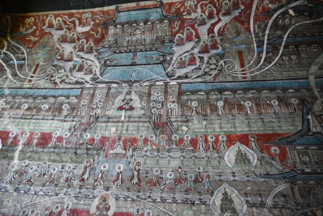 当然更特色的壁画则是弥勒经变,为中国为数不多保存至今的西夏壁画,整组弥勒经变壁画宽3.05米,高2.3米,包含了12座殿堂、阁楼、门楼等建筑群,涵盖的人物数量超过239个。