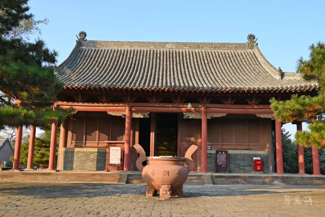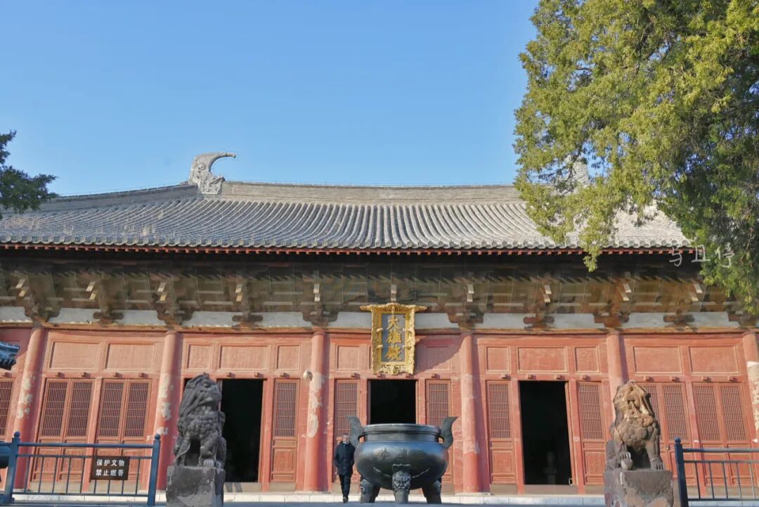 从天王殿穿过之后,面阔九间的大雄宝殿突然屹立在你的眼前,一下子将你的惊喜感提升。长48.2 米,宽25.13 米,高达21米的规模让它成为了中国第一大雄宝殿,而五脊单檐庑殿顶规格,彰显了它曾经作为皇家寺院的荣耀。