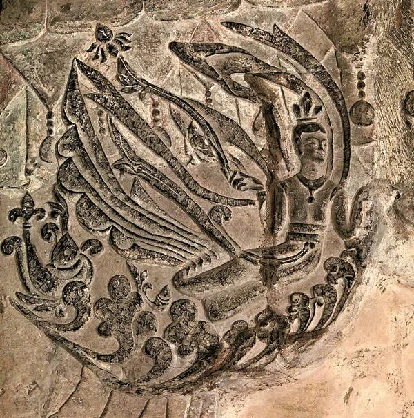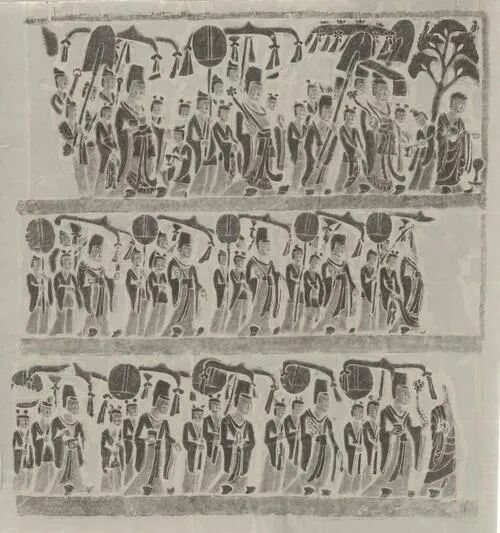 除了第一窟之外,其实在第3-4窟中还可以看到这样的礼佛图,只不过规模和完整度不如第一窟。第三窟中主要保存了一组半的礼佛图。在石窟的南壁上可以看到,左边的礼佛图有些残存,重点可以关注保存较好的西侧。上部分的两层可以清晰的看到帝后,女侍等众人的礼佛场面,从人物大小就可以看出地位的不同,形象生动地反映了封建社会的尊卑等级,可以说第三窟的礼佛图欣赏价值和第一窟一样极高。