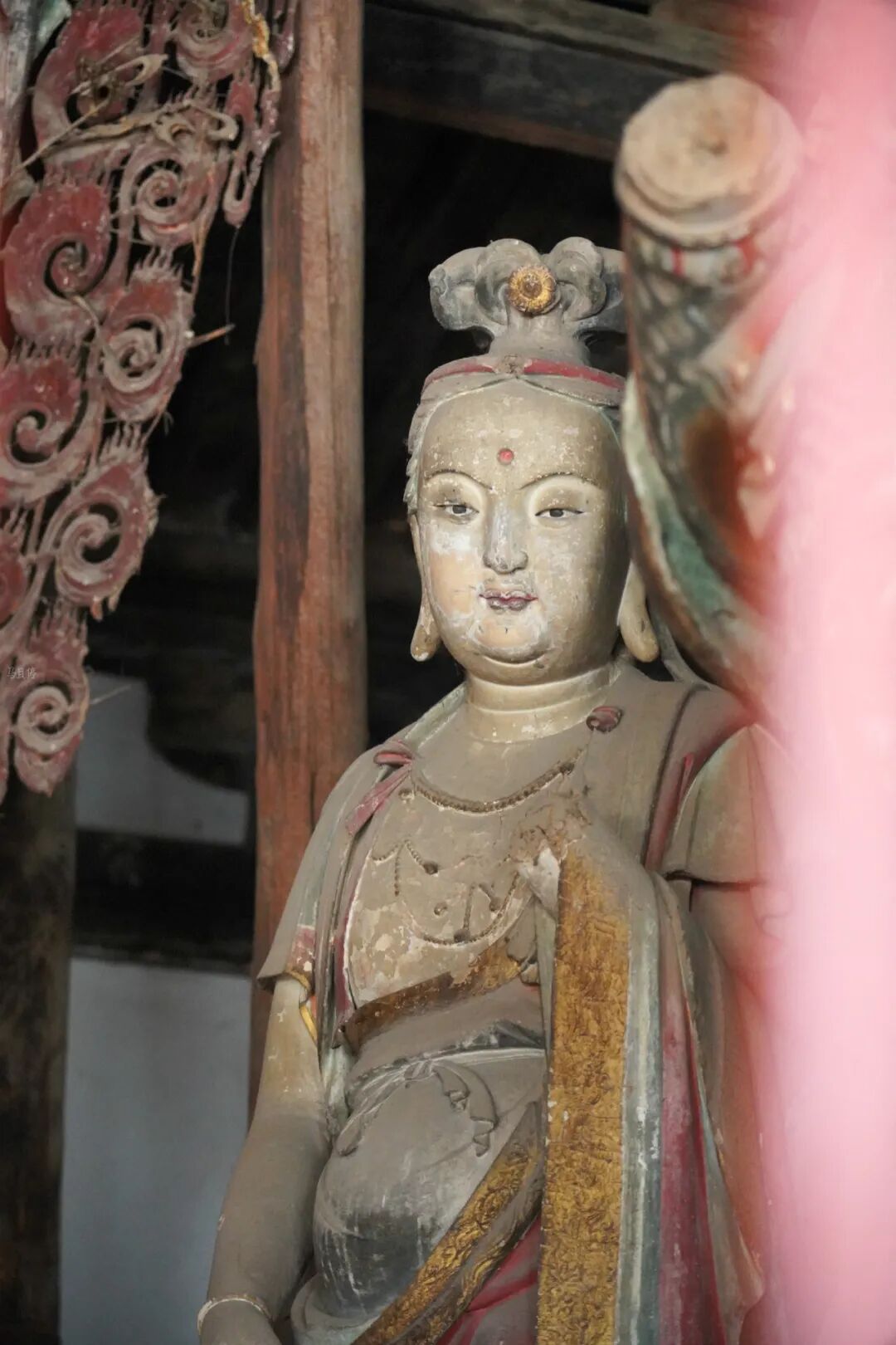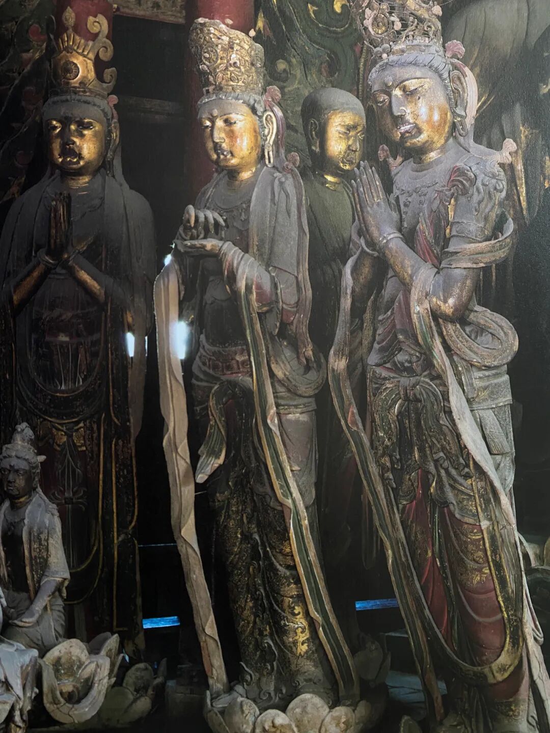 和木构建筑一样丰富的还有殿堂内的彩塑和壁画,佛光寺、南禅寺、晋城青莲寺藏有圆润庄重的唐代彩塑;山西大同华严寺中的辽代彩塑更是一绝;而长治法兴寺中的宋代圆觉菩萨和崇庆寺中的十八罗汉,写实的雕塑手法塑造出了仿佛真人版的造像,这些精美的造像填补了中国早期彩塑的空白。