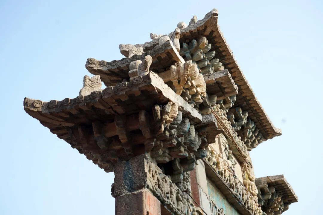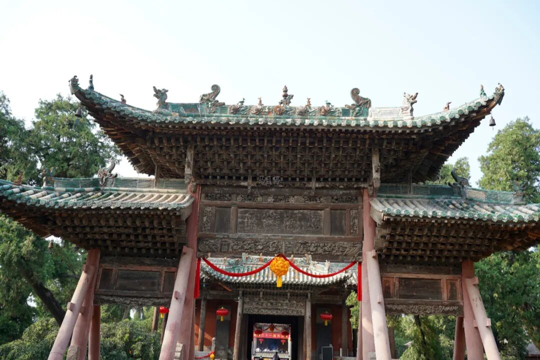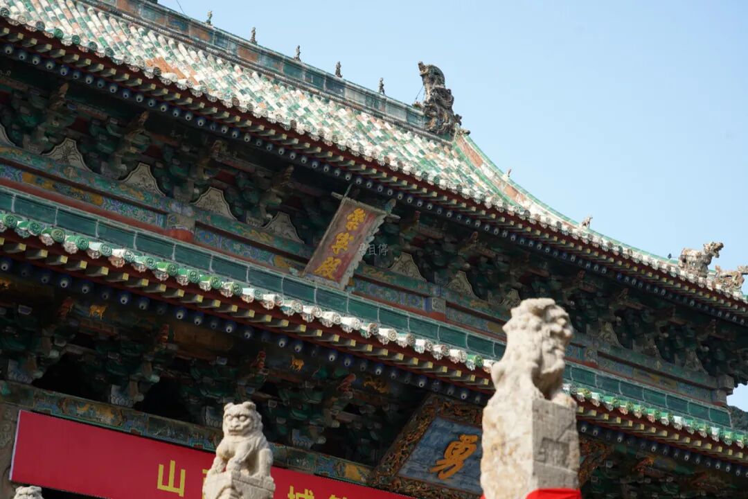 第2个看点就是端门,也就是四龙壁后面的山门。这是一座明嘉靖年间重建的仿木结构建筑,宫门的正中间刻着“关帝庙”三个字。很多人会错过这个山门,但其实其表面的浮雕工艺相当精湛,尤其是砖雕更是明代雕刻建筑中的精品。