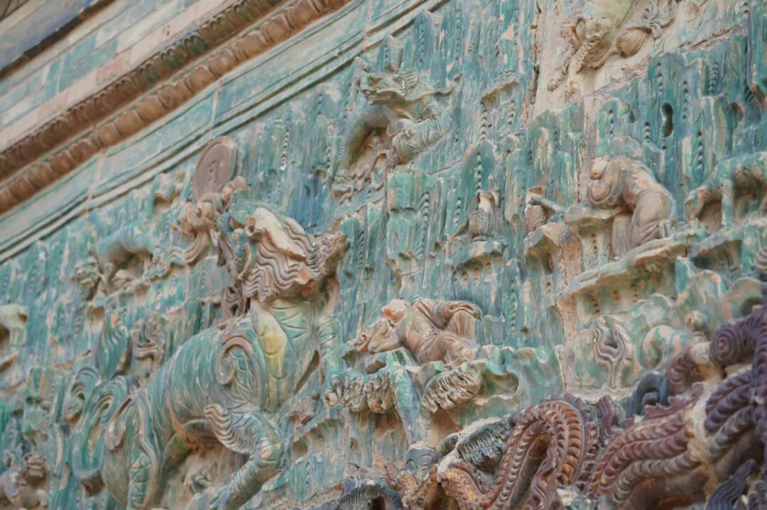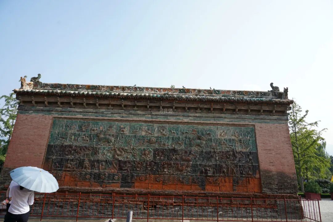 第1个看点就是山门之前的龙壁,虽然在体量上这个龙壁比不上山西大同,平遥以及北京北海公园的龙壁,但是放在国内的话其实这个龙壁同样非常特色。该龙壁始建于明代宣德年代,距今已有近600年历史,看起来有些残破,但是现存的琉璃螭吻装饰品同样非常精美。