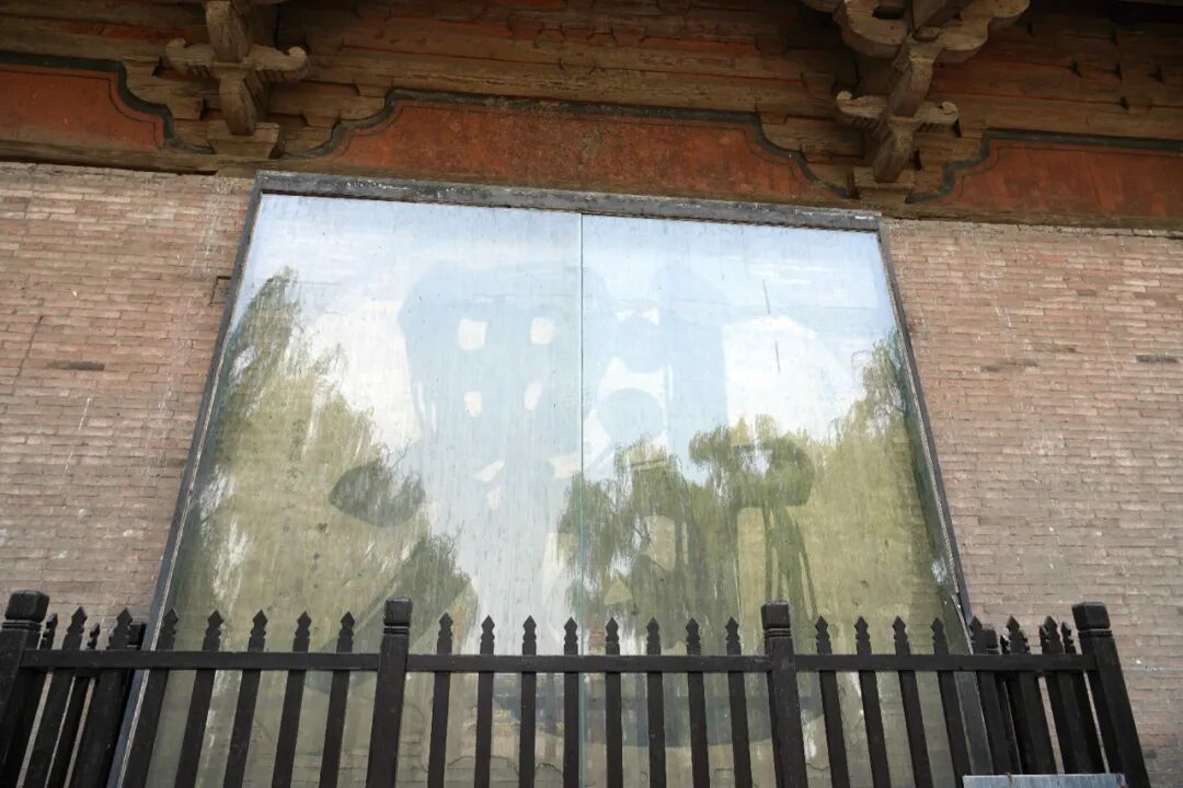 穿过牌坊之后继续往北走就是文庙的第二座建筑那就是大成门,同样是后期修复的一个建筑,不过门前的马匹雕塑和色彩浓郁的壁画同样看起来非常朴素,和平遥古城非常和谐的搭配。
