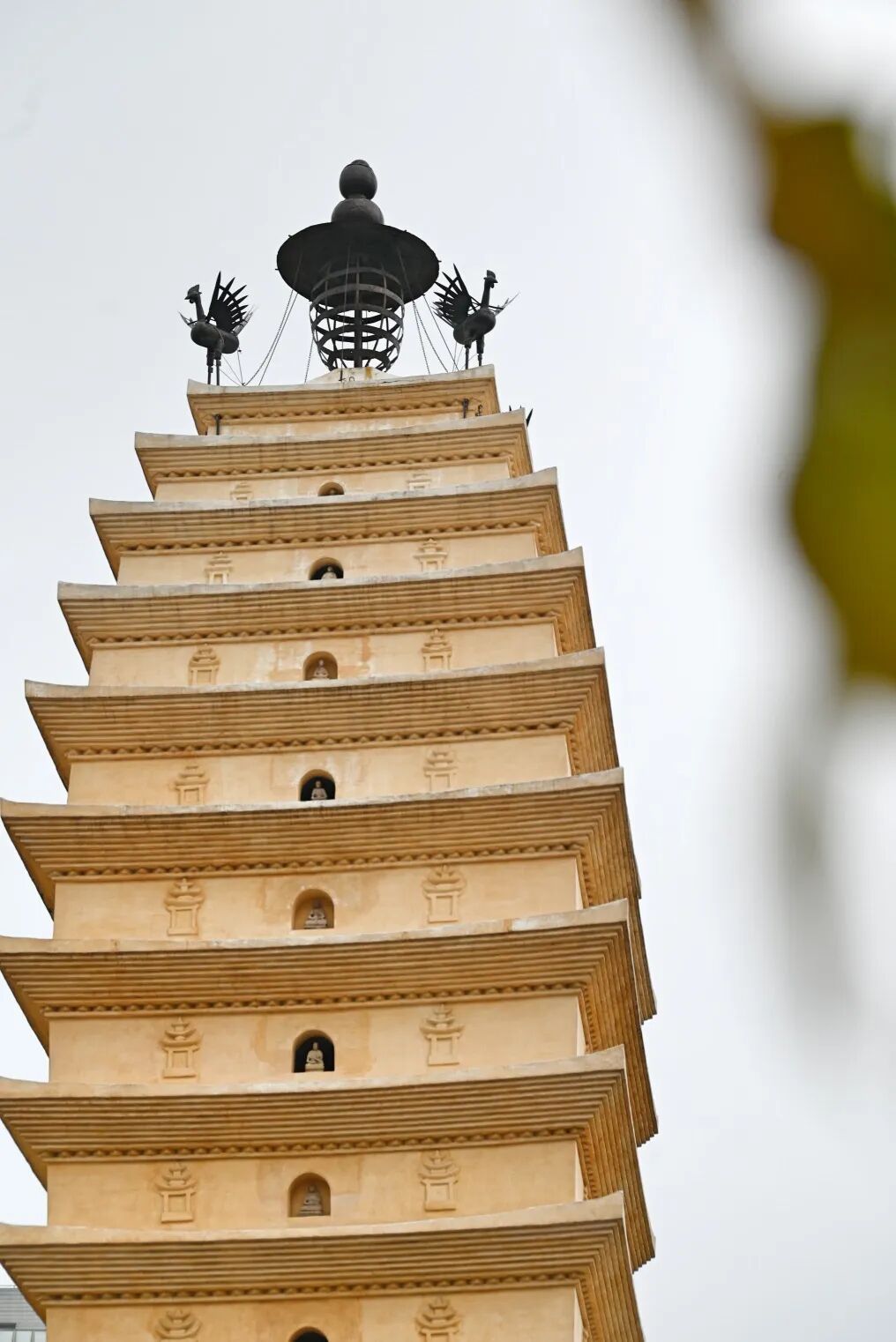 再来仔细看看慧光寺塔,外观为13级四方形密檐式空心砖塔,高约40米。整座塔主要包含了塔基、塔身以及塔刹三部分。