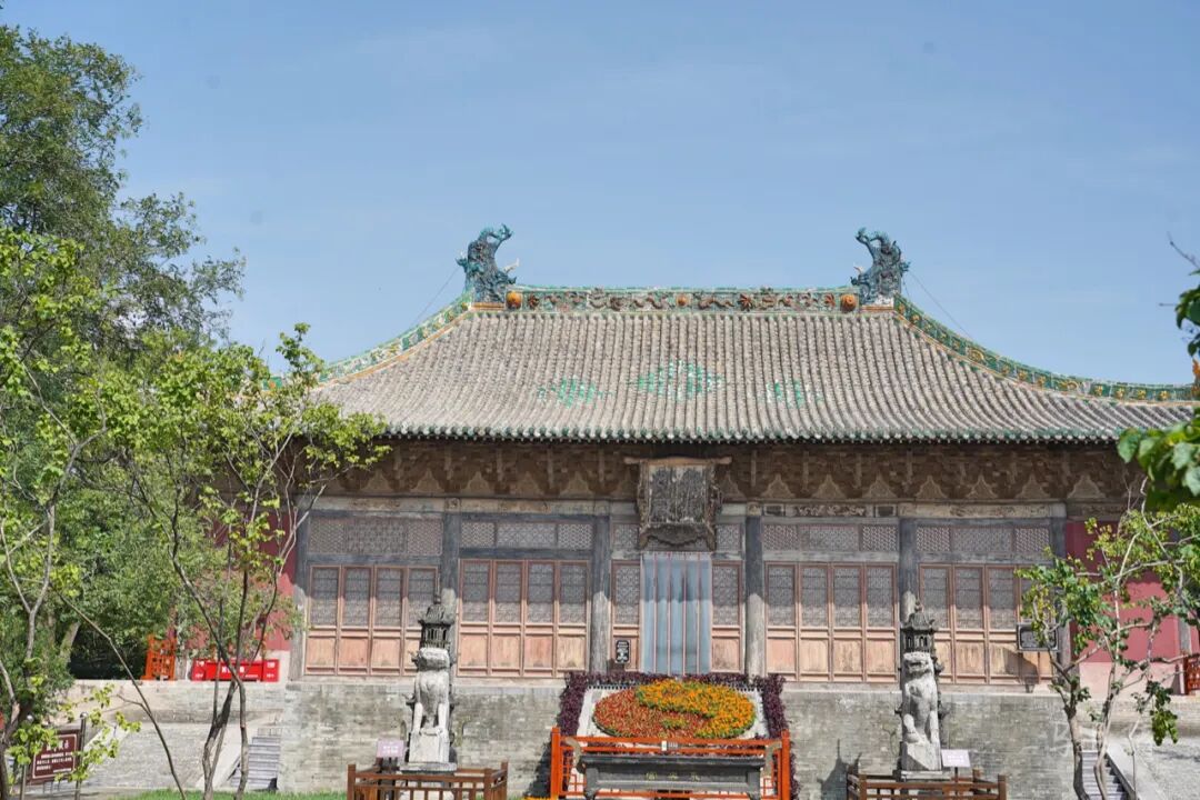 广仁王庙景区面积不大,现存仅两座建筑,其一为清代保存至今的戏台,在这里可以看到精美的砖雕。另一座则是戏台对面的面阔三间的主殿,里面供奉着龙王,看起来有些寒酸。不过它可是中国第二古老的木建筑-唐代保存至今的木构,仅仅晚于五台山县内的南禅寺。