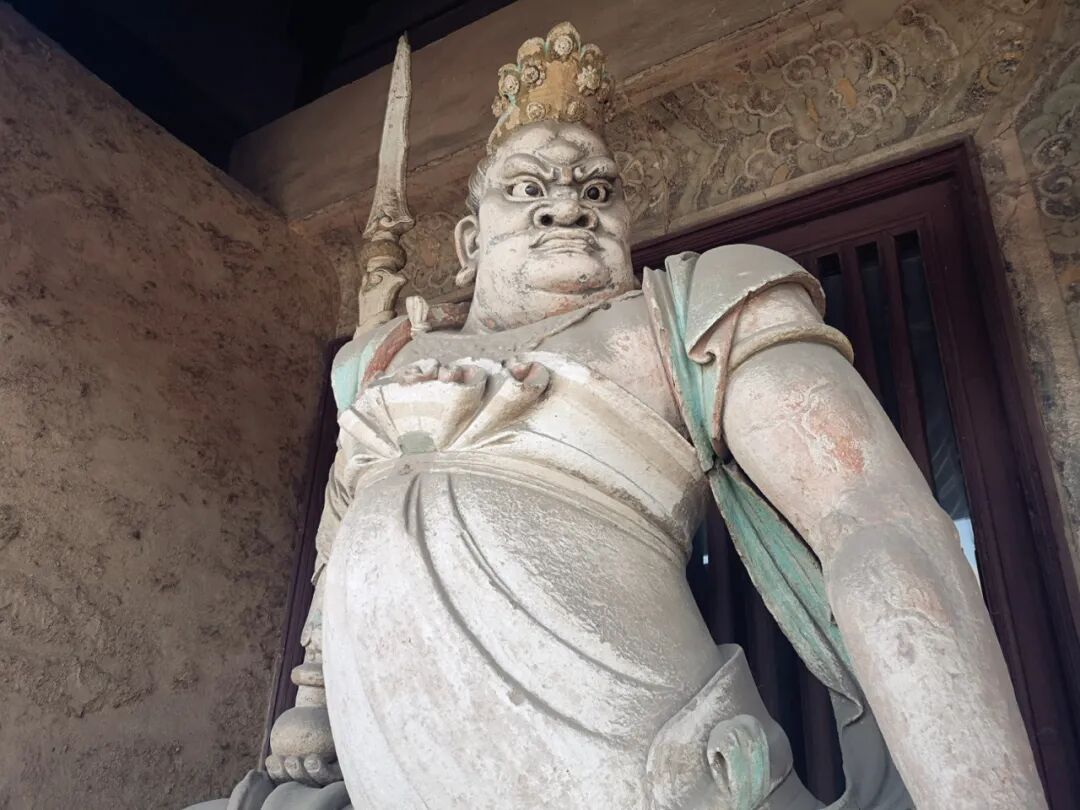 和菩萨殿有着异曲同工之妙的就是千佛殿,这可是双林寺的彩塑巅峰之作,主尊观音像神态自然,超然脱俗,两侧极富个性的韦驮和夜叉立像,都成为明代彩塑中的艺术珍品。