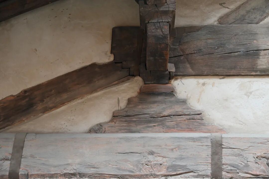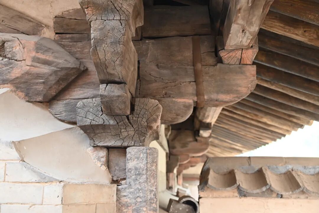 当我们细细发现这座西配殿的时候,可以明显地感受到整个建筑带着浓郁的几个朝代特征,其中第一个就是除了包裹在墙内的木柱外,还可以看到几根石头材料的石柱,这些石柱没猜错的话应该是明清时期用来替换残损的老木柱子,让其他古老的木建筑结构更建筑,更好地延续了它们的寿命。可以说这种大木构建筑能够保存上千年和历朝历代的保护性维修有着莫大的关系。