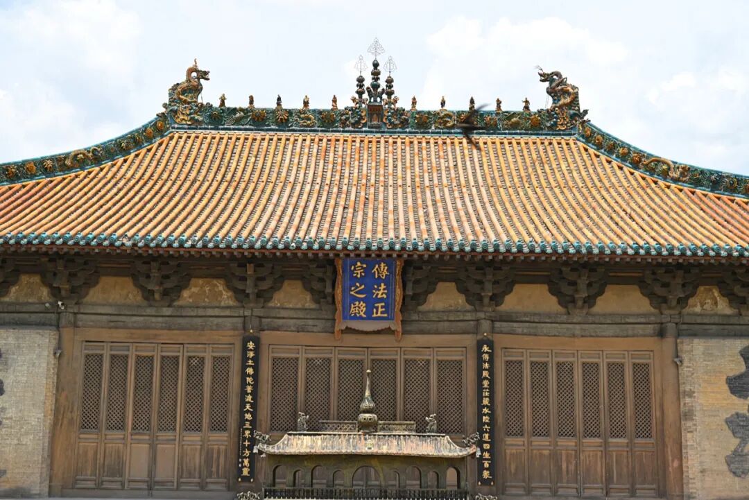 在我看来永安寺最大的看点就是号称中国第一传法正宗殿的正殿,它是一座面阔五间的单檐庑殿顶的建筑。