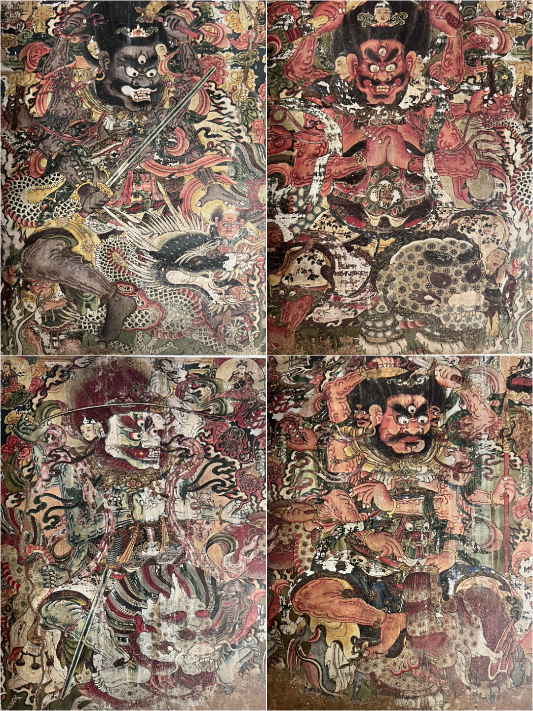 在我看来,永安寺的壁画最大特色就是融合了多种宗教元素,藏、道、萨、佛等。最耀眼的当属北侧山墙上的十尊明王像。