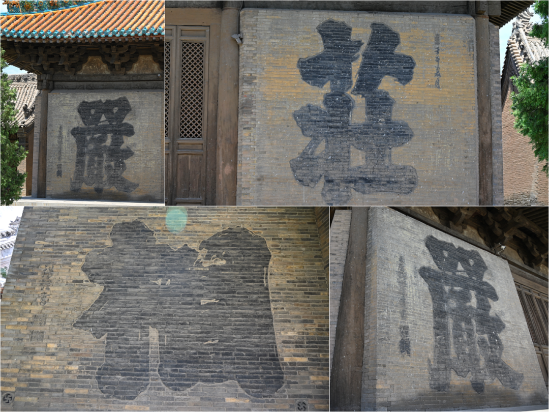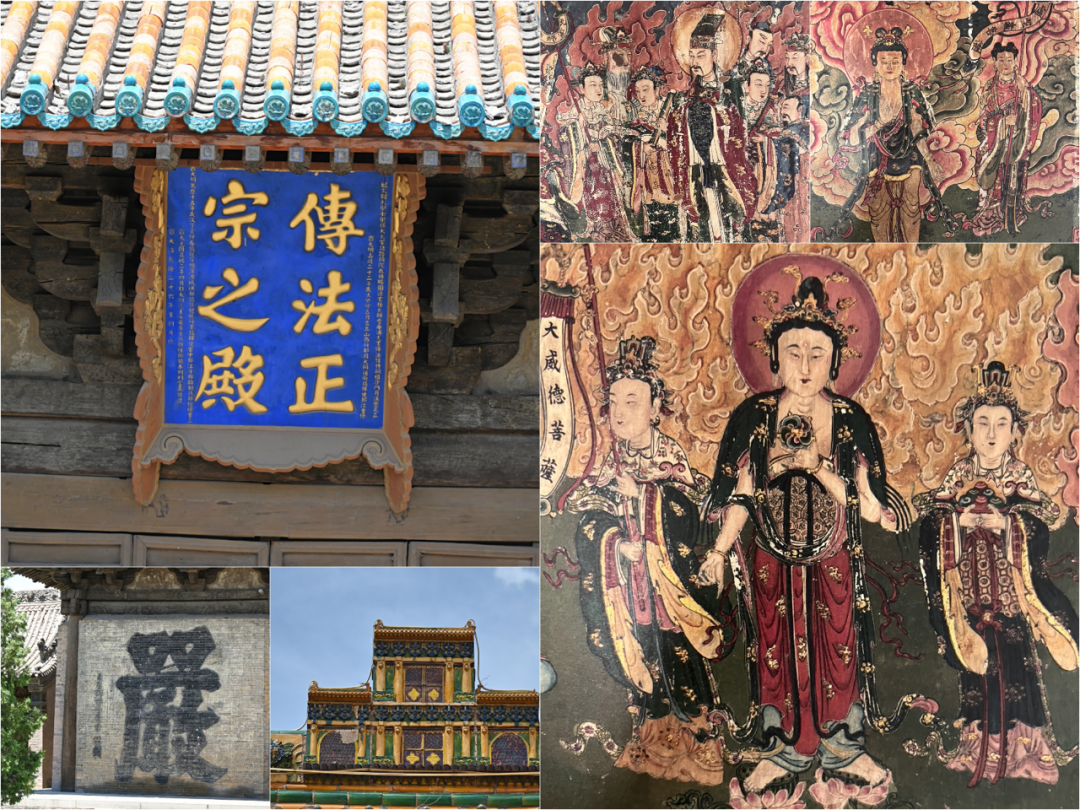 对了永安寺的墙壁外围还可以看到不少特色的书法,比如号称国内孤品的元代初年书法家雪庵和尚所题「传法正宗之殿」,比如元代主持月溪所书的“庄严”,再比如清代乾隆年间张煖书“虎啸龙吟”,当中又以苍劲雄浑元代书法最为宝贵,展示了雁北雄厚的气息。