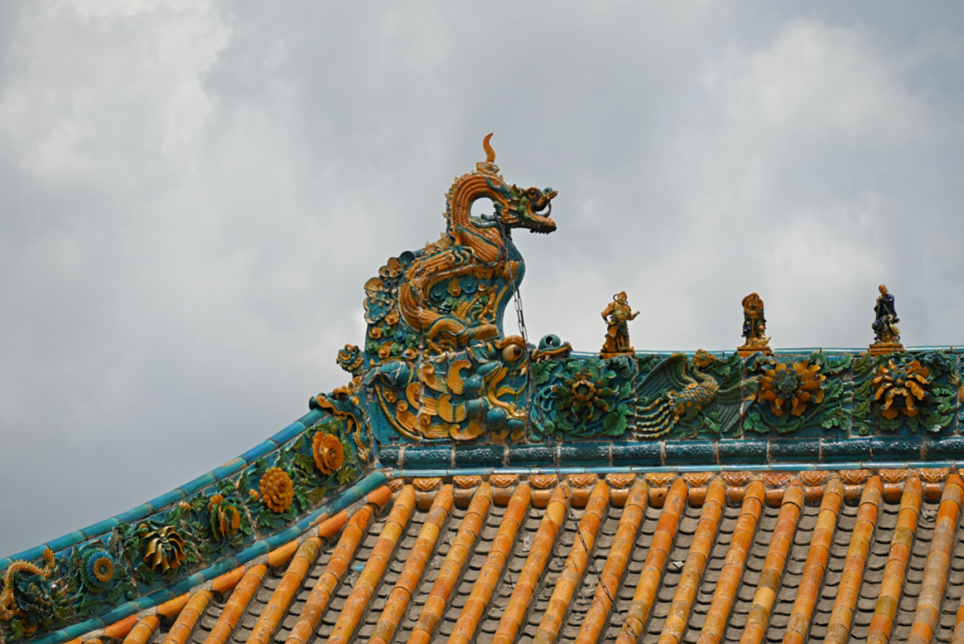 在殿堂顶部同样运用了皇家御用的黄色琉璃瓦,加上屋顶四周全部用蓝、绿琉璃瓦装饰,让正殿看起来很是富丽堂皇。