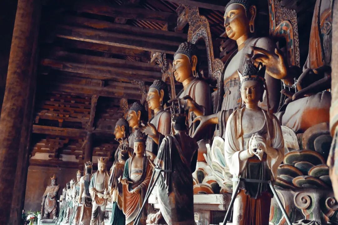 和木构建筑一样古老的还有藏在殿堂内的十几尊辽代彩塑,庄严神圣的七佛并立为唯一罕见的存在,典雅端庄的胁侍菩萨仿佛就像是民间少女一般。