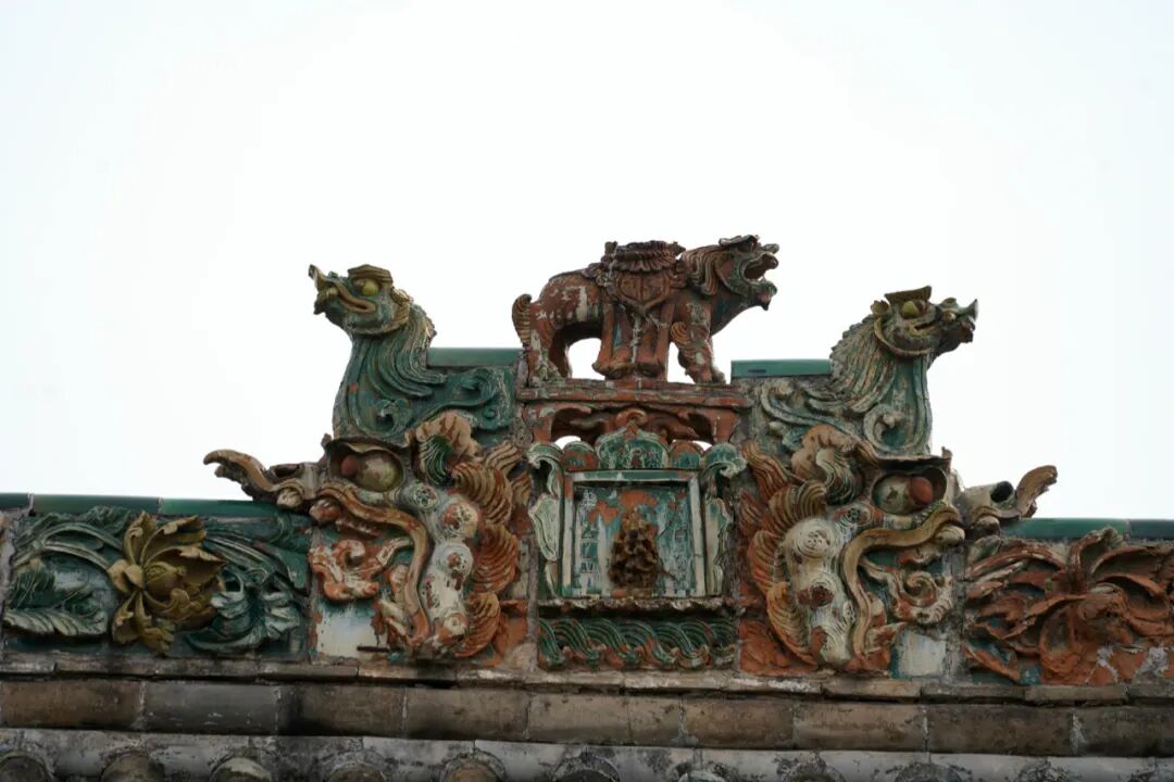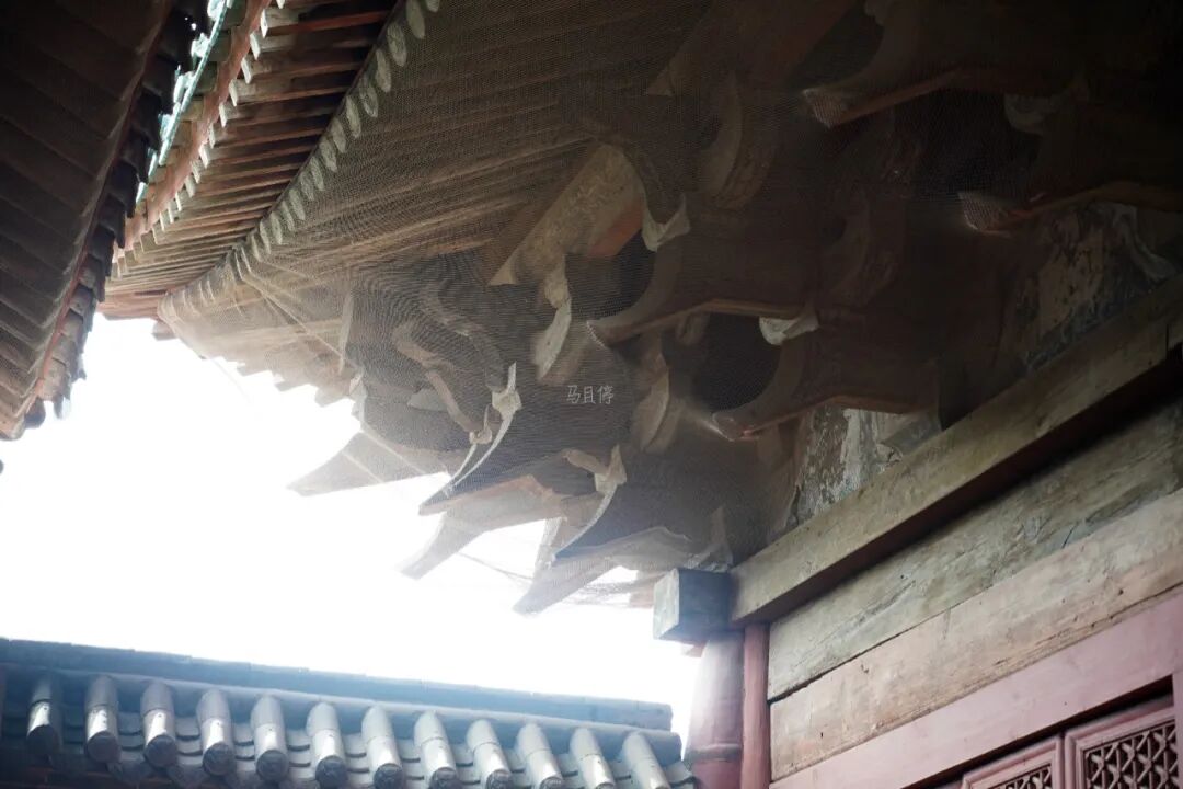 除了宋代木结构外,还可以重点关注殿顶的琉璃制品,均为明代保存至今的遗存,尤其是中间部分的"二龙戏珠"更是精美绝伦,堪称是明代琉璃制品的精华。