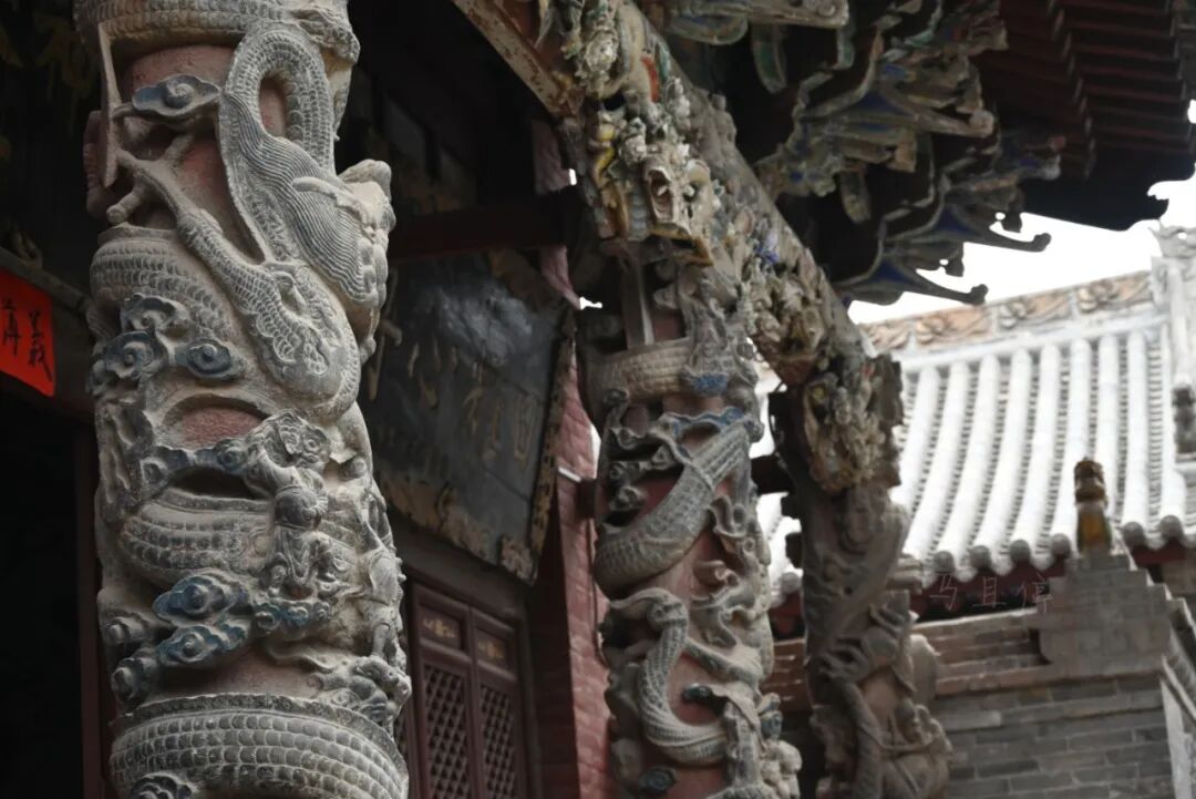 不过藏在庙内的8根石柱很是精美,关帝殿前面的四根每根柱子上攀附着石雕龙、木雕龙、砖雕龙、琉璃龙等几十条,活灵活现丰富群龙聚集。