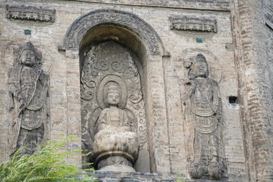 我个人最喜欢的就是佛塔塔身处的精美浮雕,每面塔身中都设有佛龛,每个佛龛中间都有一尊佛,佛通过工匠的技艺雕刻出面容饱满的神情;坐佛的两侧还雕刻有胁侍菩萨,菩萨温文尔雅,婀娜多姿。