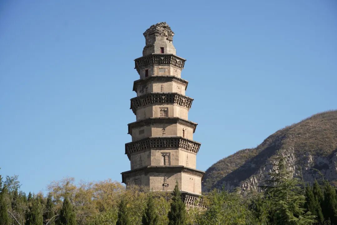 现存北响堂山石窟景区主要包含了独乐寺遗址、宋塔以及石窟区域,我的北响堂山石窟从宋塔开始,这是一座宋代保存至今的仿木结构佛塔,其表面的仿木斗拱很是精美,诠释了宋代的建塔艺术。