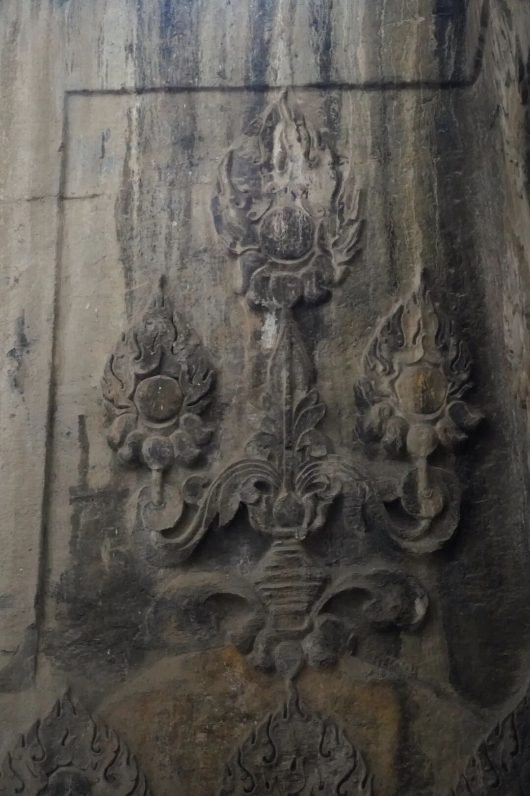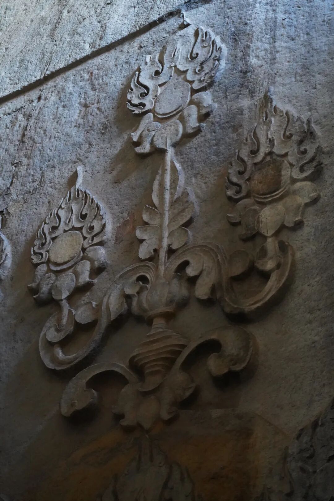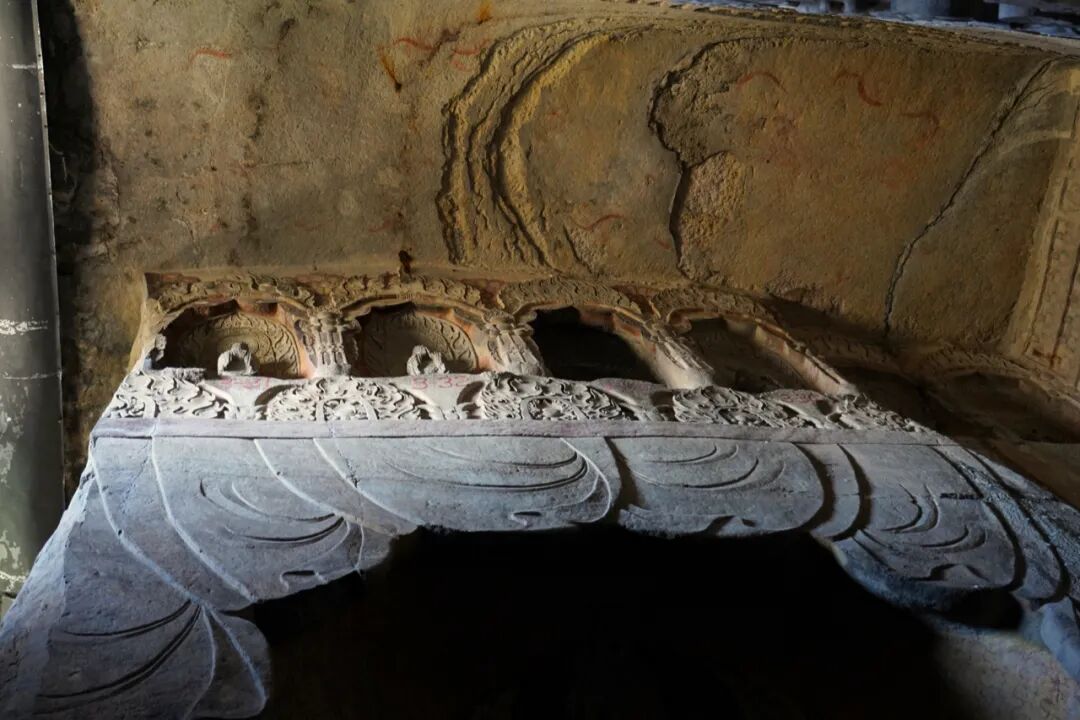 大佛洞内除了精美的造像之外,崖壁上的浅浮雕同样极具珍贵,尤其是宝珠、相轮、莲花组成的花朵更是北响堂山石窟景区的镇窟之宝。
