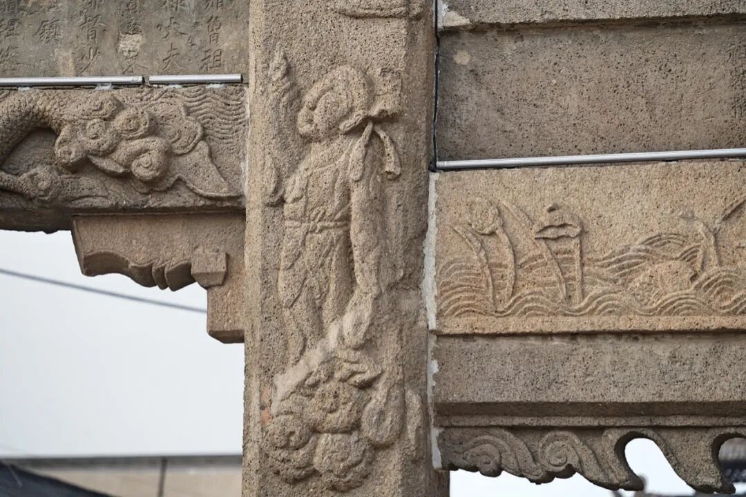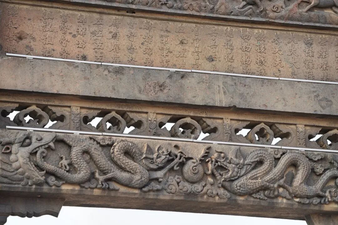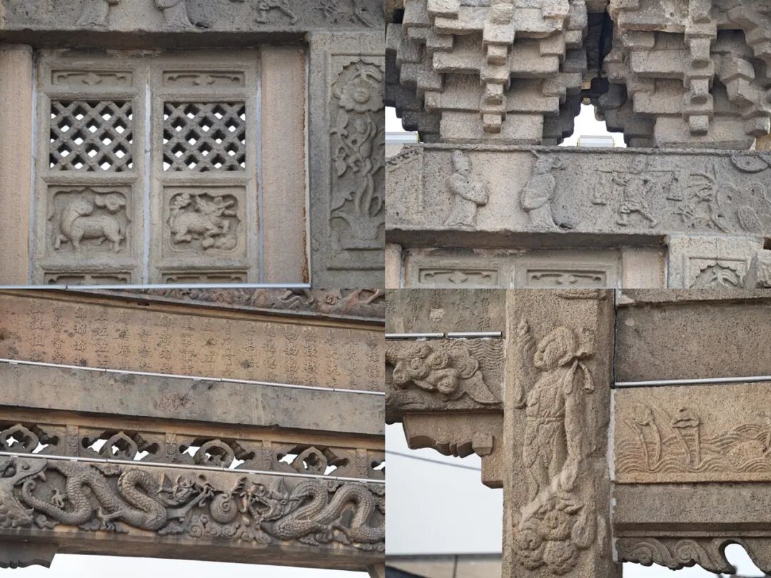 中间刻有“四世元戎少傅”,说明了祖氏四代都是忠良。牌坊的两侧刻有二龙戏珠以及征战的浮雕,充分体验了曾经金戈铁马的壮烈场景。据说这个牌坊在1969年的时候被拆除过,后期在原址上又复原了。
